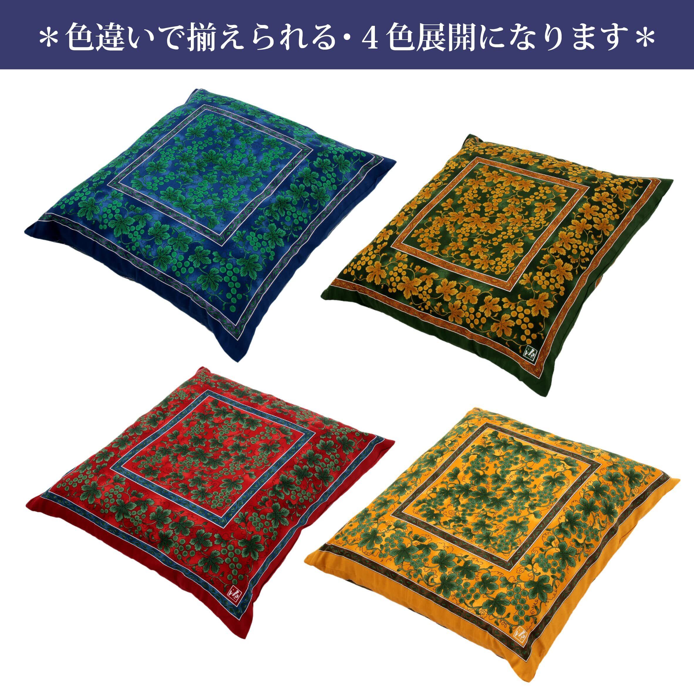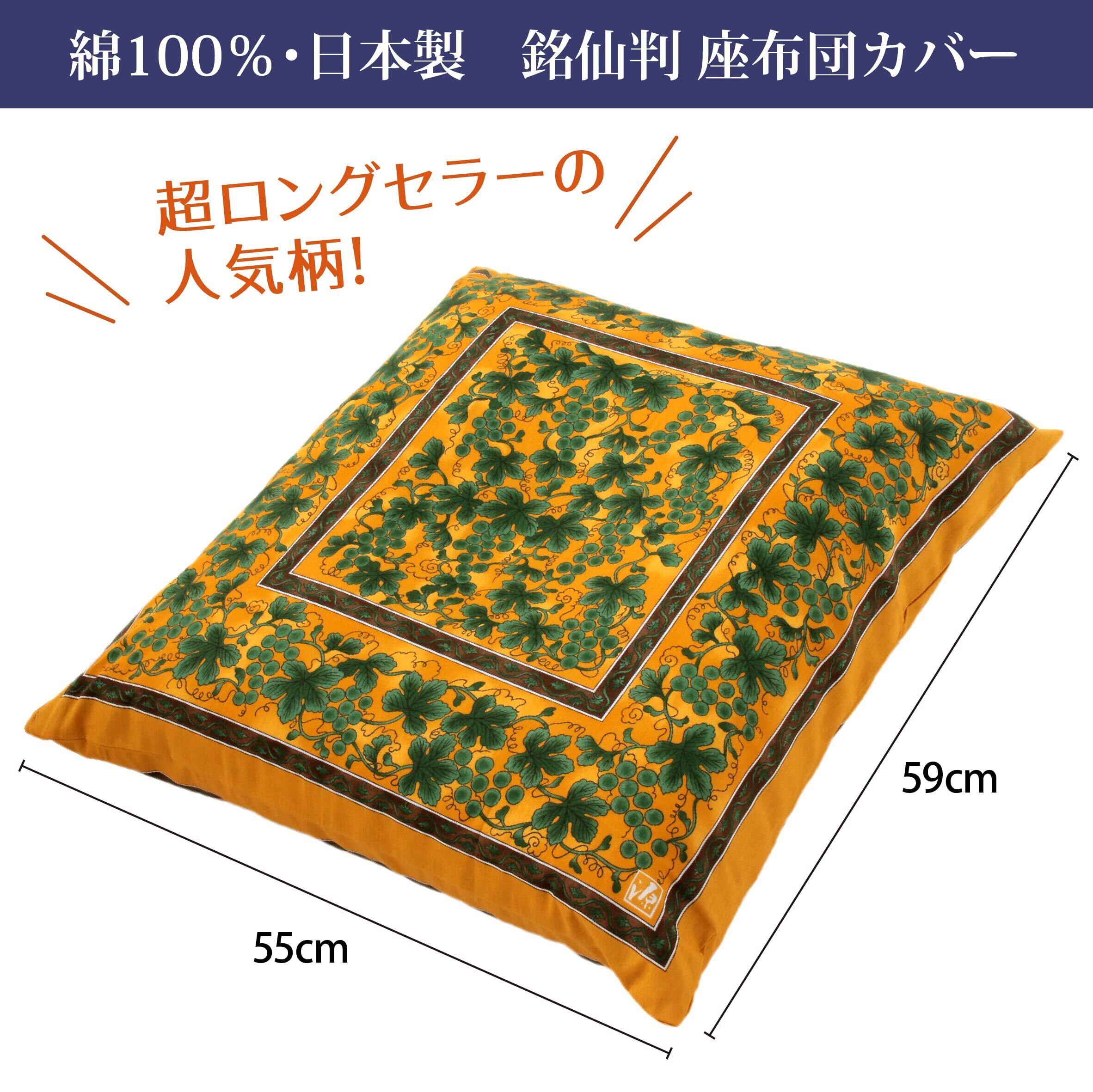 nishikawa 【 西川 】座布団カバー 銘仙判(55X59cm) 洗える 緑彩葡萄絵柄 日本製 イエロー PG02083096