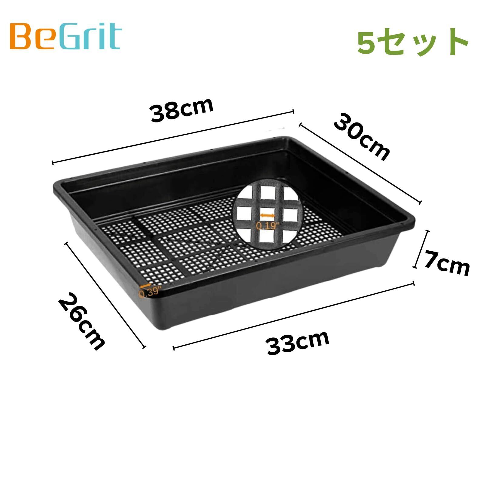 BeGrit 育苗ポット 苗トレー 5セット37x30cm育苗トレイ育苗箱 苗床 トレイ稚苗用苗箱 プラスチックプラントトレイ ガーデン苗スターターキット 多肉植物輸送ポット盆栽トレーニングポット家庭園芸(ブラック)