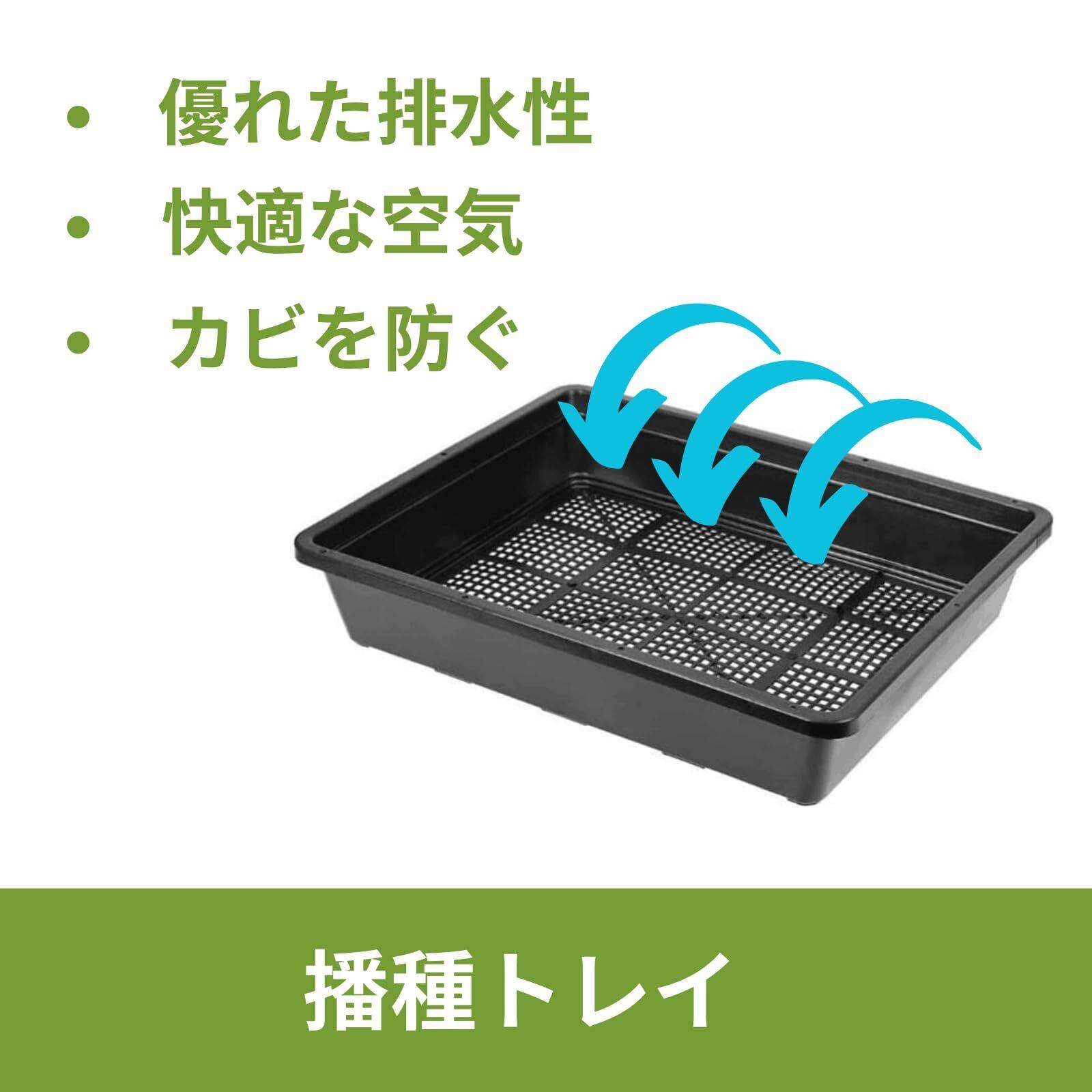苗床トレーメッシュボトムのデザイン: 余分な水が通り抜け、根の成長を訓練するための十分なスペースがあり、土壌ブロックやロックウールキューブに最適です。
