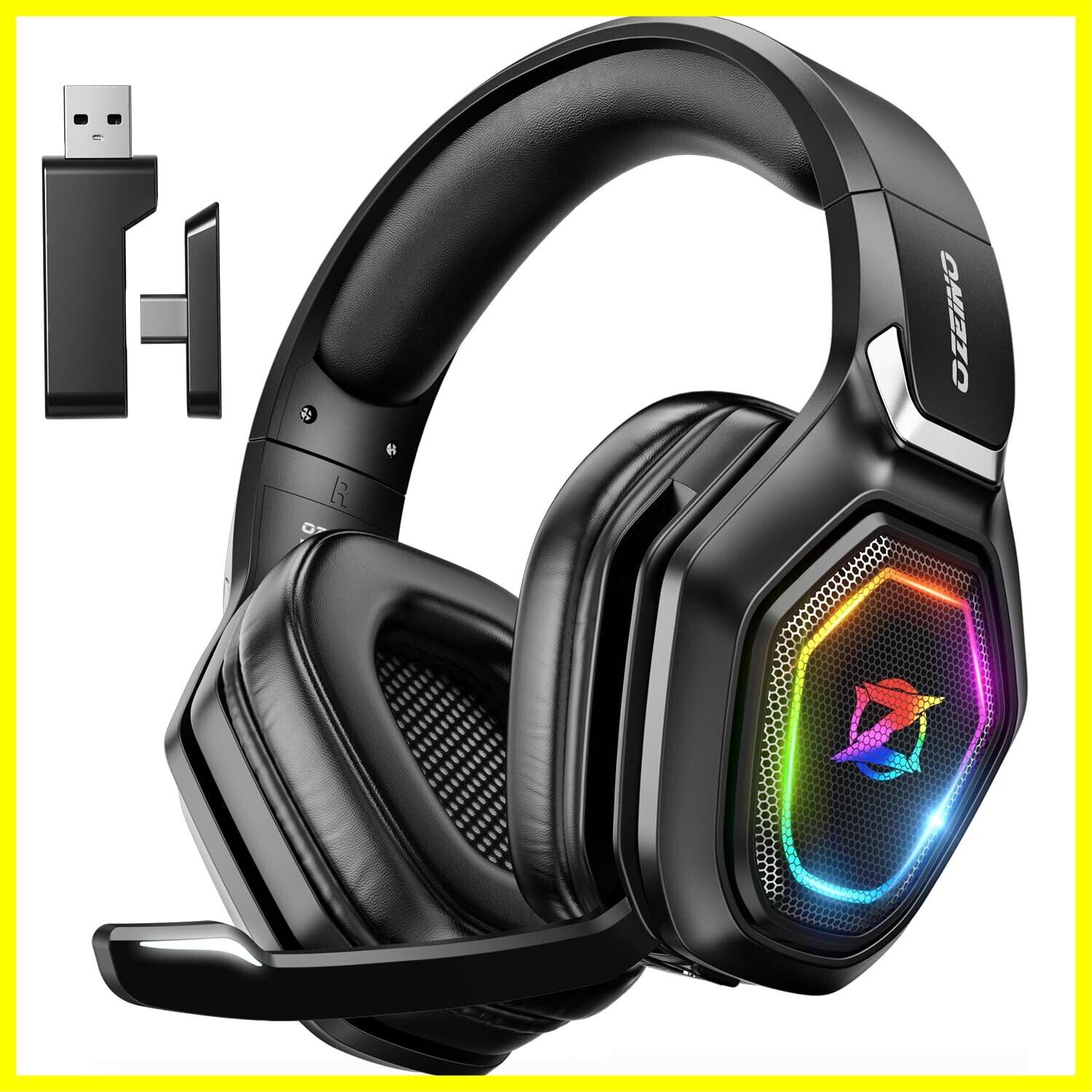 ゲーミングヘッドセット ゲーミングヘッドホン 3-in-1ワイヤレス 【5.3 Bluetooth/USB-A/USB-C】7.1ch 軽量 30時間連続使用 <25ms超低遅延 RGBライトヘッドセット マイク付き Ps5 Ps4 PC Switch対応 スマートフォン OW810黑 無線
