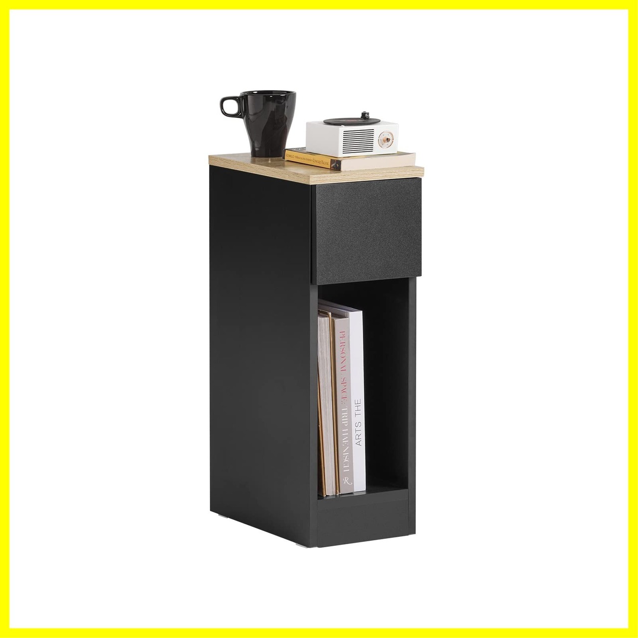 SoBuy ベッドサイドテーブル ナイトテーブル スリム サイドテーブル 奥行き35x 幅20x高さ60cm 省スペース オシャレ 引き出し付き 北欧風 ソファー サイドチェスト 寝室 リビング サイドボード ベッド横テーブル(FBT111-SCH/ブラック)