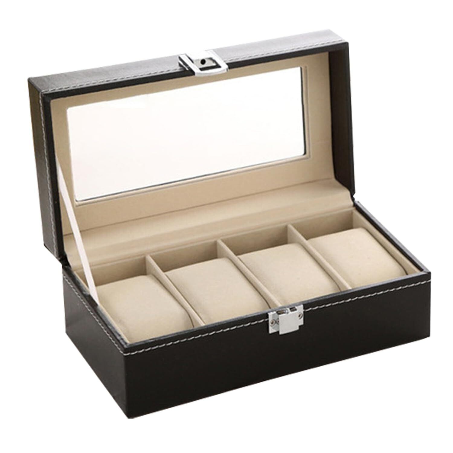 腕時計収納ケース コレクションケース 時計展示ボックス ウォッチ コレクションケース PUレザー 2本用 3本用 4本用 6本用 携帯用 1本用付き 耐衝撃 旅行携帯用 クロス付き持ち運び可能 母の日 父の日 クリスマス 誕生日プレゼント (4本用+携帯用)