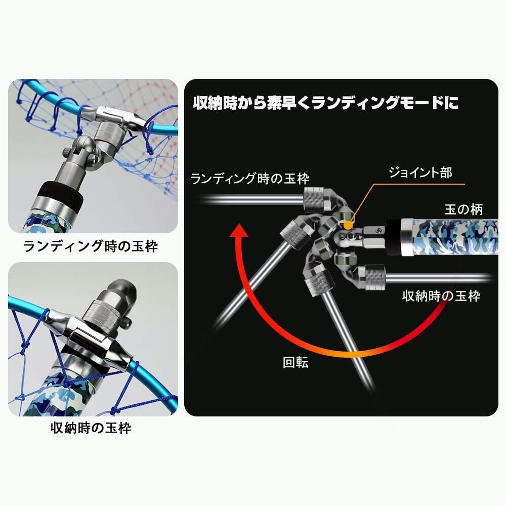 【折り畳み式ネット】網の枠は航空級アルミ素材と四つ折り設計を採用し、超軽量で収納や持ち運びに便利で す。また、撥水性に優れたラバーコーティングネットを使用し、汚れにくくて海水の付着による重くなることがありません。 柔らかくて魚の鱗を傷つかずに、魚を無傷でキャッチできます。