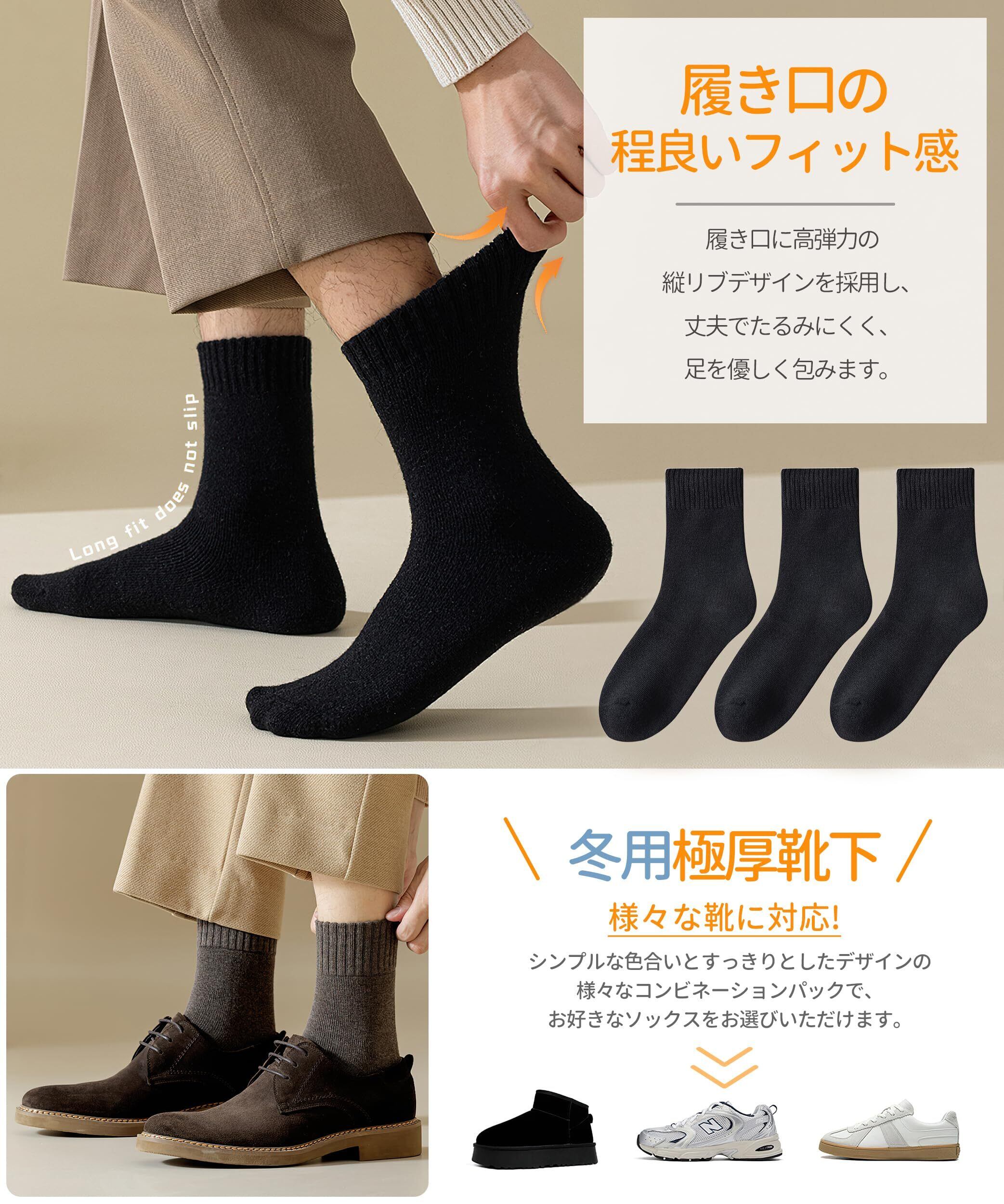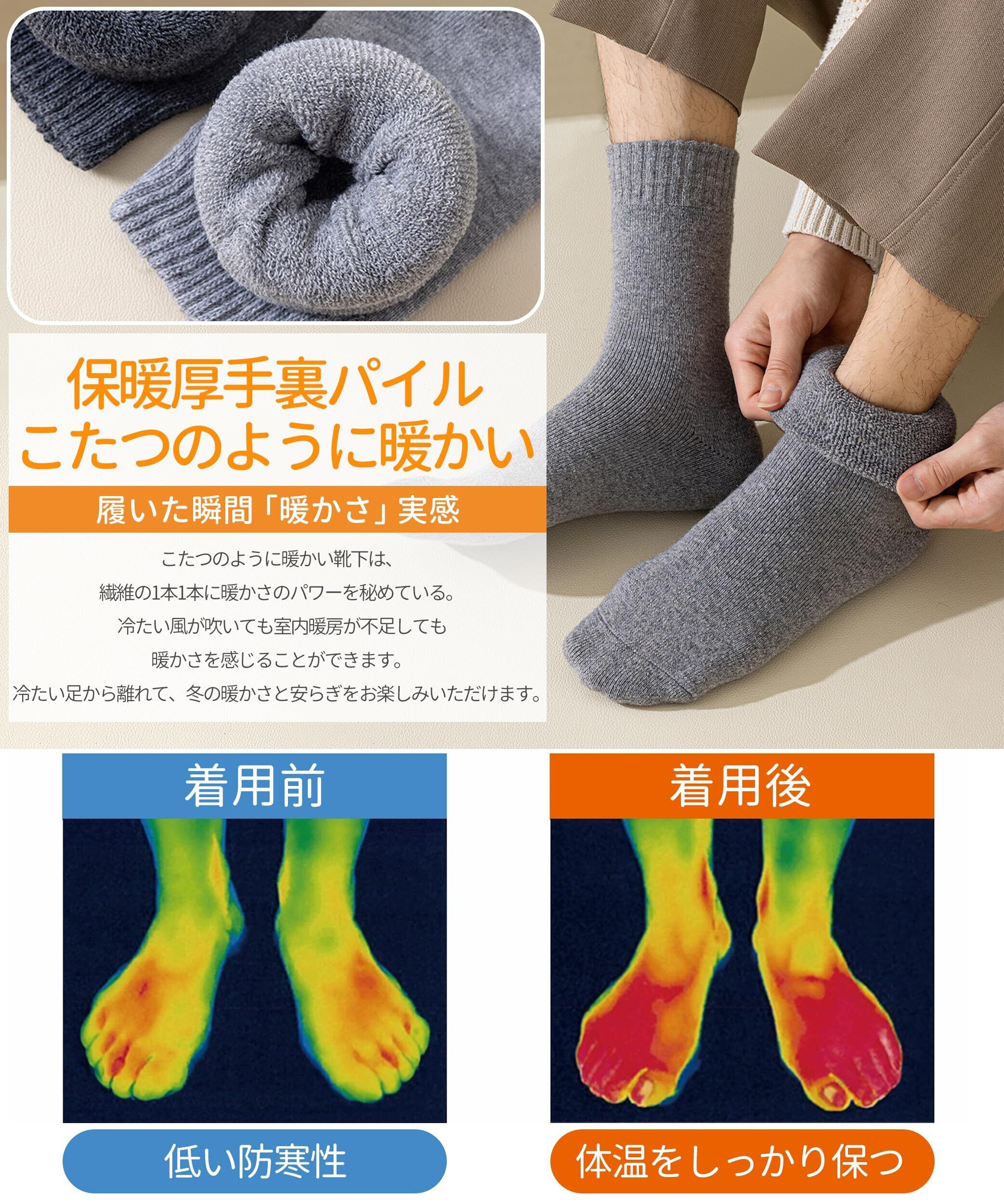 [Lavento] 靴下 メンズ ソックス 冬 厚手 【こたつのように暖かい・保暖厚手裏パイル】 防寒靴下 暖かい靴下 ウールソックス 防寒 保温 消臭 耐久性 伸縮性 室内 アウトドア スキー スポーツ 25-29㎝