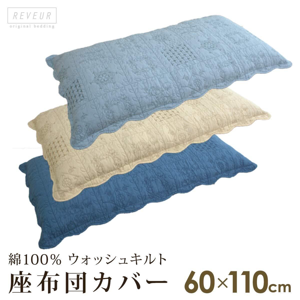 リヴェール 長座布団カバー 2枚セット 長座布団 60×110cm用 綿100% ウォッシュキルト 水洗い キルティング 910-6011(ブルー)