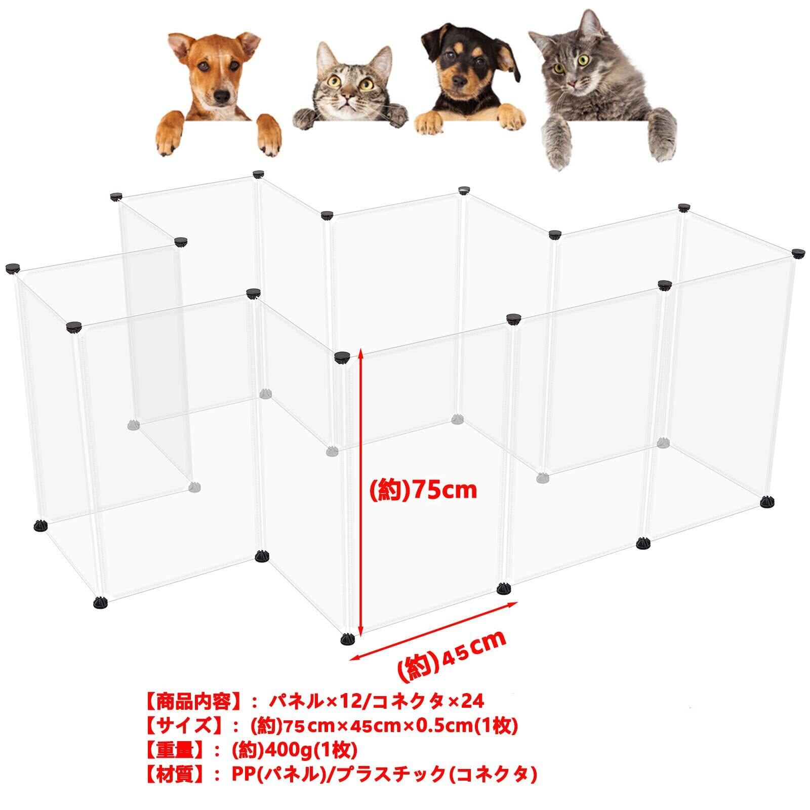 ペットフェンス 犬 猫 パーテション 侵入防止 コンパクト 区切り ペットケージ 12枚組 ペットサークル 透明パネル 自由 組み立て 簡単 ペット用ハイゲート 脱走防止 軽量 持ち運び便利 SY-CWL-01 (12枚セット)