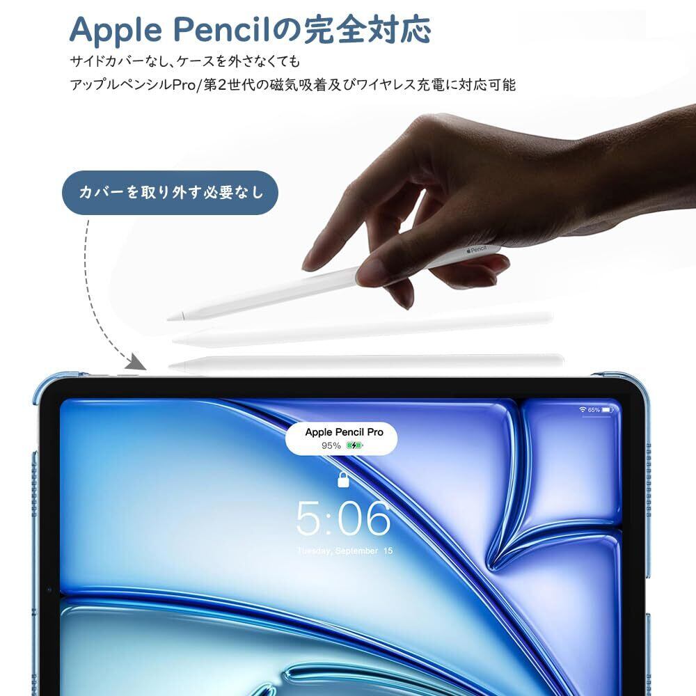 「高い操作性」 人間工学に基づいた機能設計、ケースを装着したままでも高い操作性を確保します。ケースは本体にピッタリとフィットしています。電源ボタン、音量調節ボタンも押しやすいです。ApplePencil USB-C(iPad Air 11インチ用)の磁気吸着、Pencil Pro(iPad Air 11インチ用)及び ApplePencil第2世代(iPad Air 第5世代/第4世代 10.9インチ用)のワイヤレス充電に対応できます。