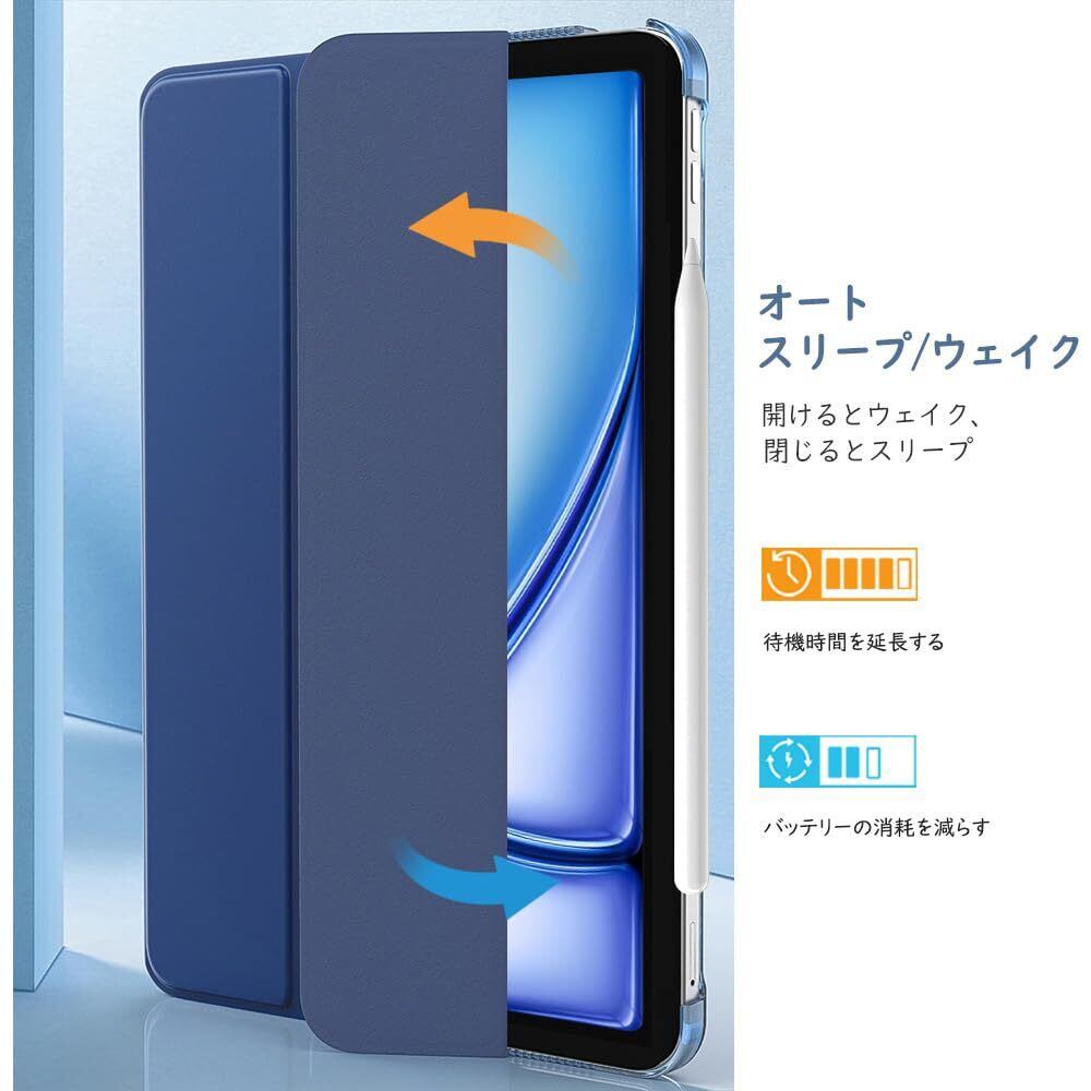 TiMOVO iPad Air 11インチ ケース M3/M2 第7/6世代 (2025/2024) iPad air 第5/4世代 ケース 10.9インチ iPadAir7/6/5/4 カバー 11インチ/10.9インチ PencilPro/第2世代ワイヤレス充電対応 PUレーザー 三つ折り オートスリープ機能 落下防止 手帳型 半透明 ネイビーブルー