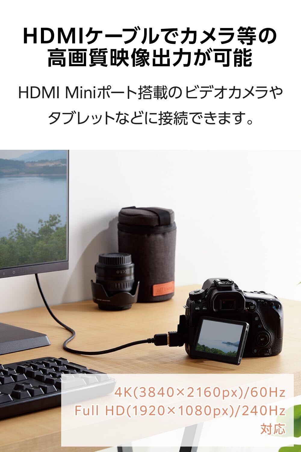 ■対応機種:HDMIポート(タイプA・19ピン):HDMI(タイプA・19ピン)ケーブル、HDMI Miniプラグ(タイプC・19ピン):HDMI Miniポート搭載のスマートフォンやタブレット、ビデオカメラ等