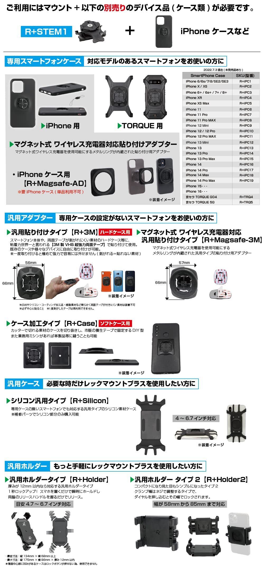本マウントは デバイス商品 (専用ケース又は スマートフォン 汎用アダプター[R+3M][R+Case] / シリコン汎用ケース[R+Silicon]/[R+TRQ])など は