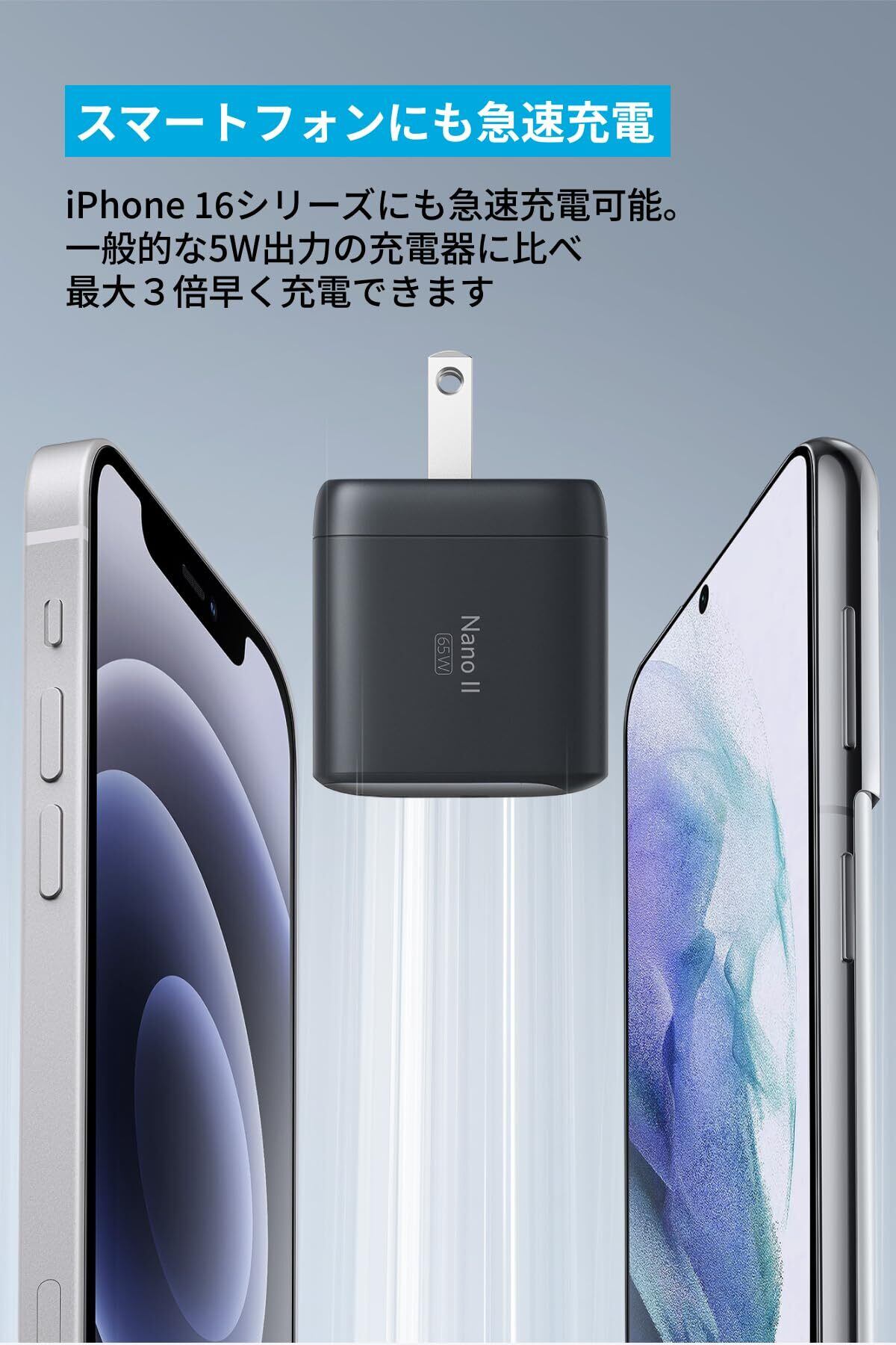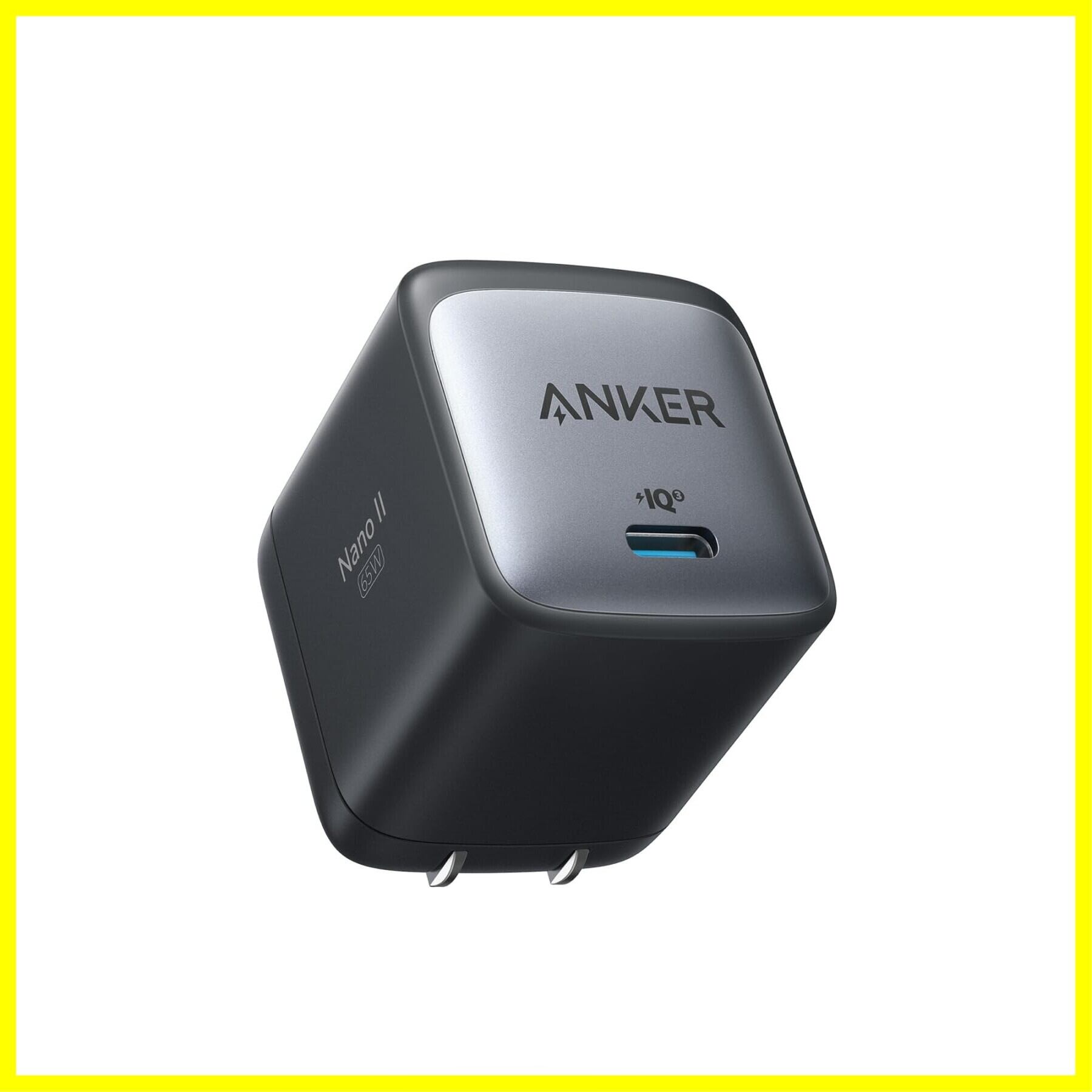 Anker Nano II 65W (PD 充電器 USB-C)【独自技術Anker GaN II採用/PD対応/PSE技術基準適合/折りたたみ式プラグ】MacBook PD対応Windows PC iPad iPhone Galaxy Android スマートフォン ノートPC 各種 その他機器対応 (ブラック)