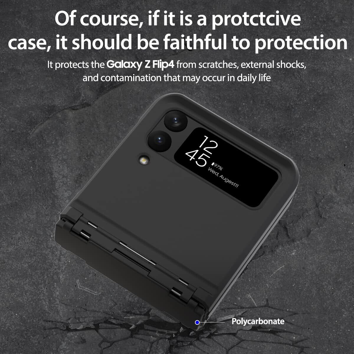 【製品仕様】… ◆ 対応機種 : Samsun Galaxy Z Flip4 5G ( サムスン ギャラクシーZフリップ4 SCG17 / SC-54C ) ◆ 内容物 : ケース × 1個 ◆ サイズ : 約 8.5cm × 7.5cm × 1.9cm ◆ 重量 : 約 21g ◆ 素材 : ポリカーボネート ◆ 型番 : AE_ZL4CSPCF3_CL