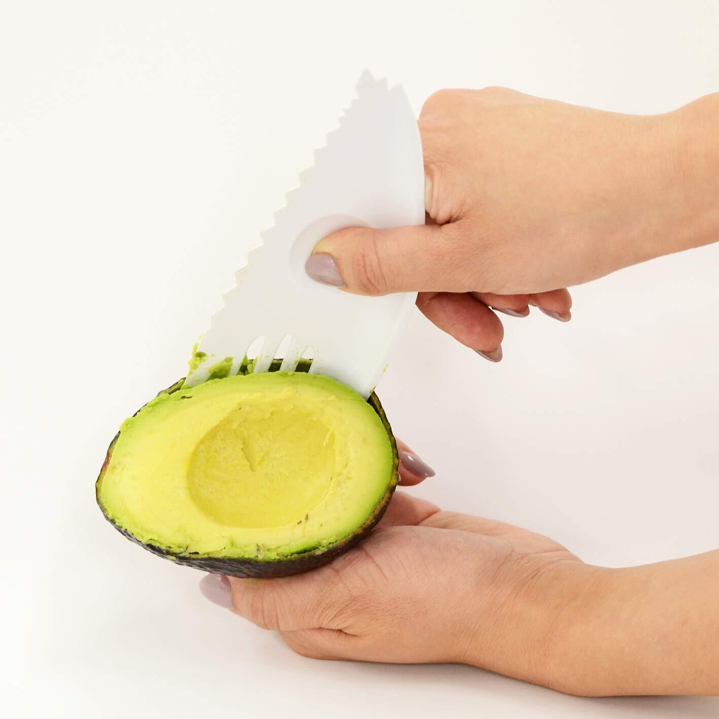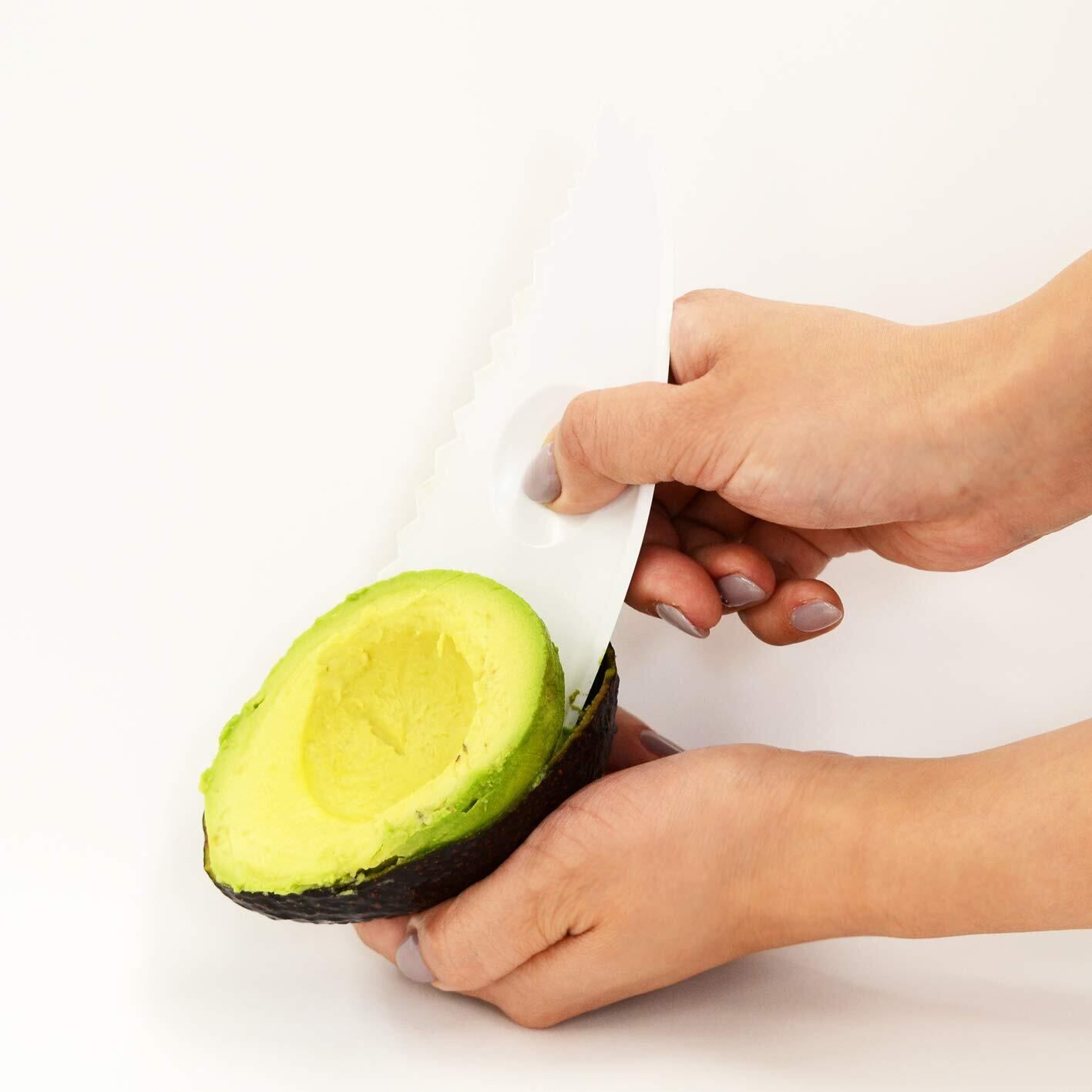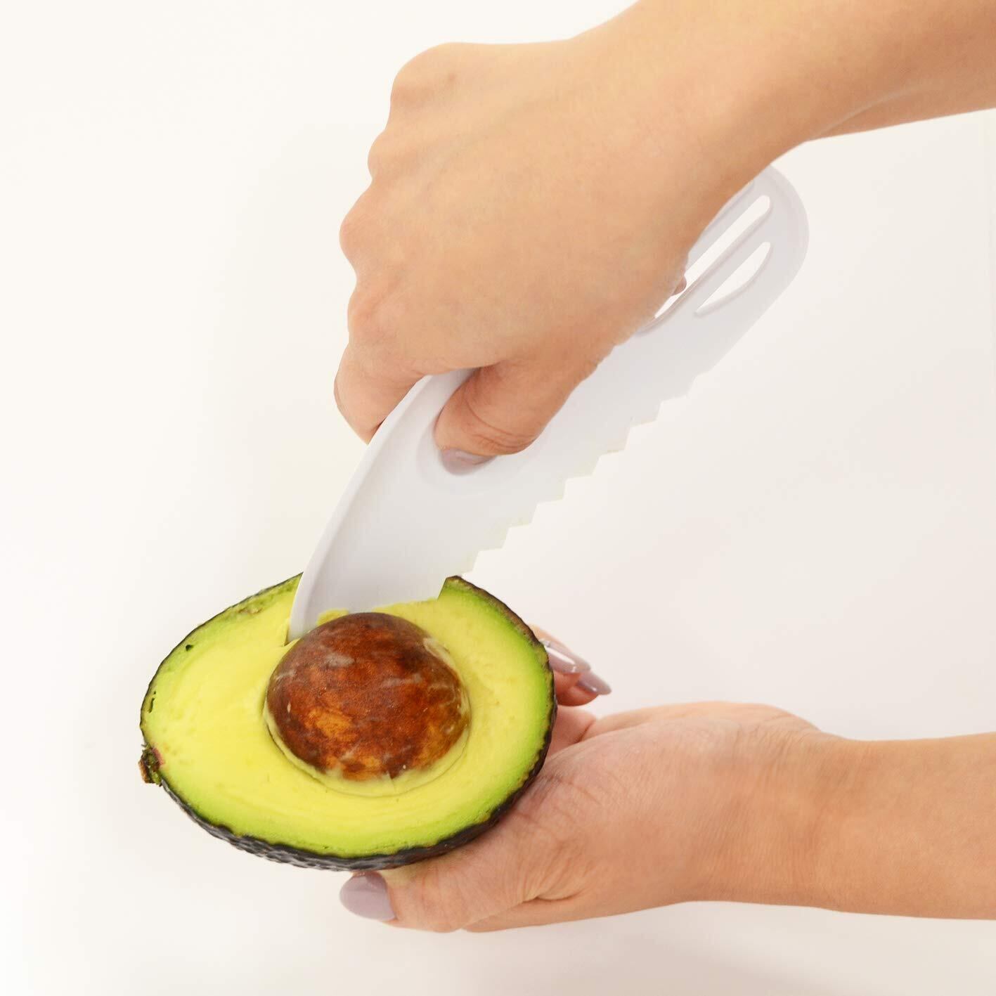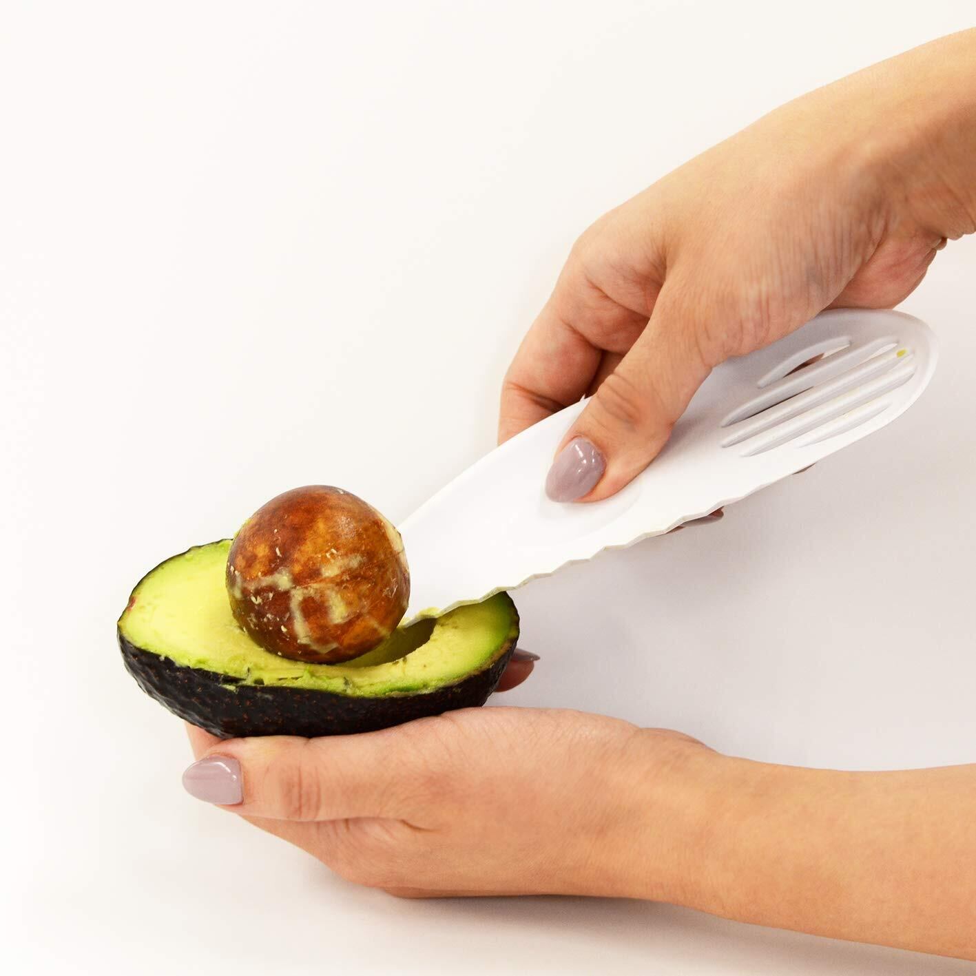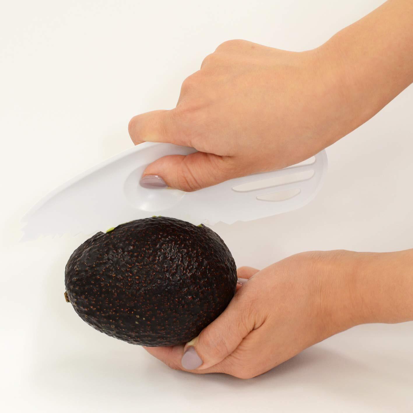 ◎これ一つでアボカドを「切る」「種をとる」「皮をむく」「つぶす」の4通り調理できる。◎しっかりにぎれる指ポケット付き。