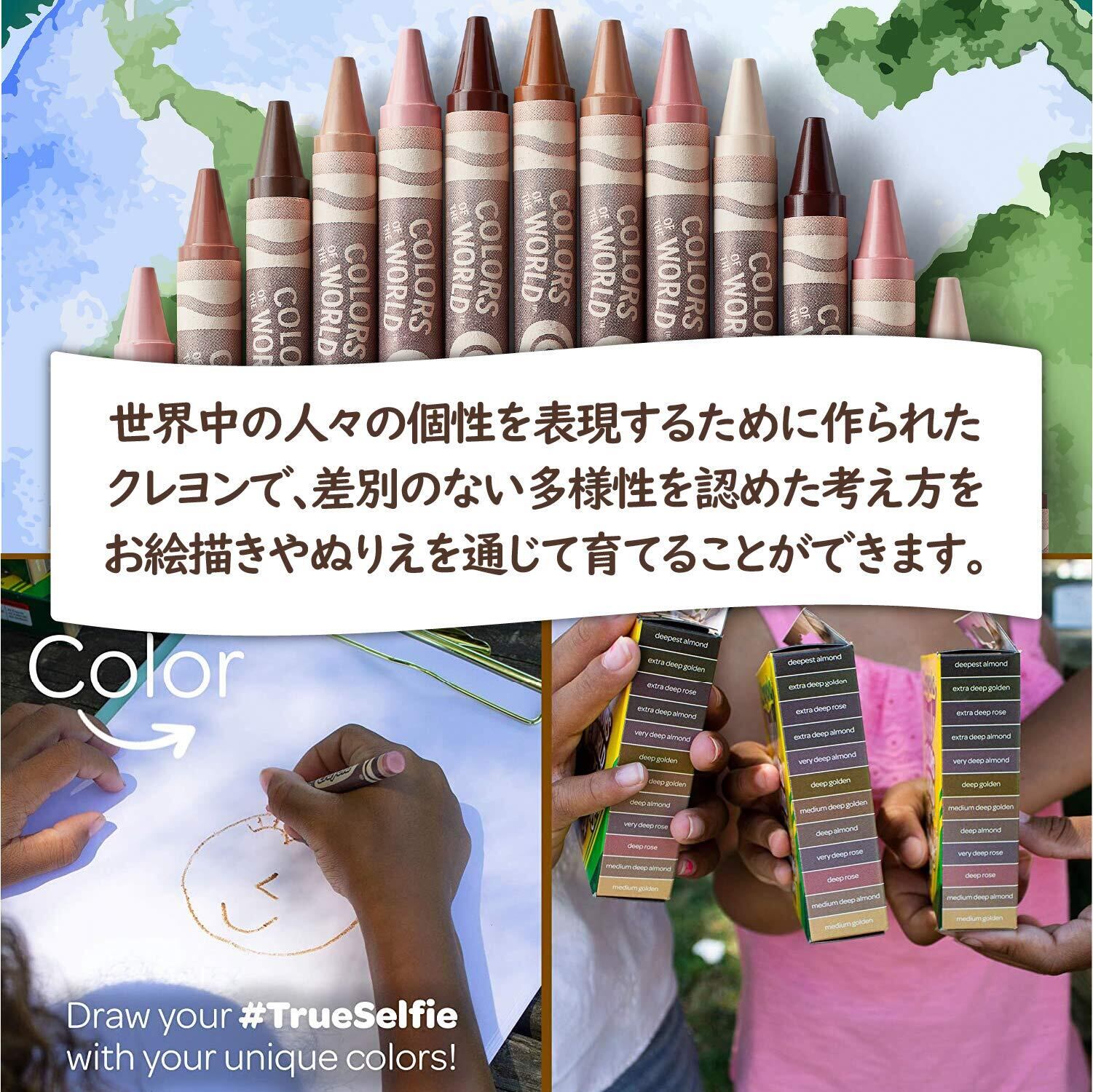【商品概要】自分の肌の色がきっと見つかる、クレヨラ (Crayola) の24色クレヨン カラーオブザワールド (Colors of the world) シリーズ。多様性が当たり前になりつつある世界で、個性や文化の違いを“普通のこと”として遊びの中で学ぶきっかけになる「24色の肌色クレヨン」。