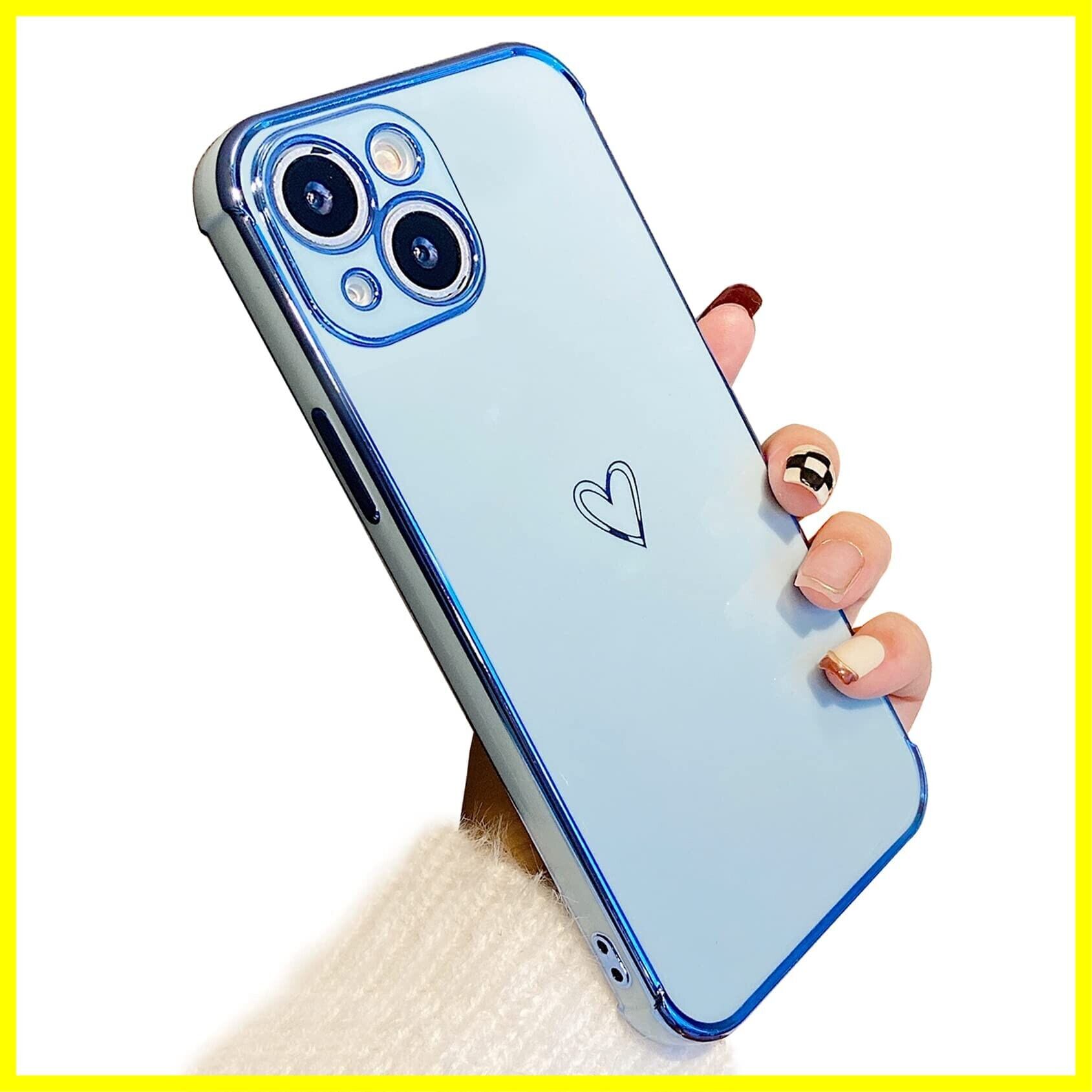 ZTOFERA iPhone 15 Plus 用 ハートケース iPhone 15 Plus ケース 柔軟な TPU シリコン スマホケース メッキ加工 ソフト 軽量 耐衝撃 おしゃれ 韓国 可愛い アイフォン 15 Plus ケース 女子 女性 心パターン 携帯電話カバー ワイヤレス充電対応 (シエラブルー)