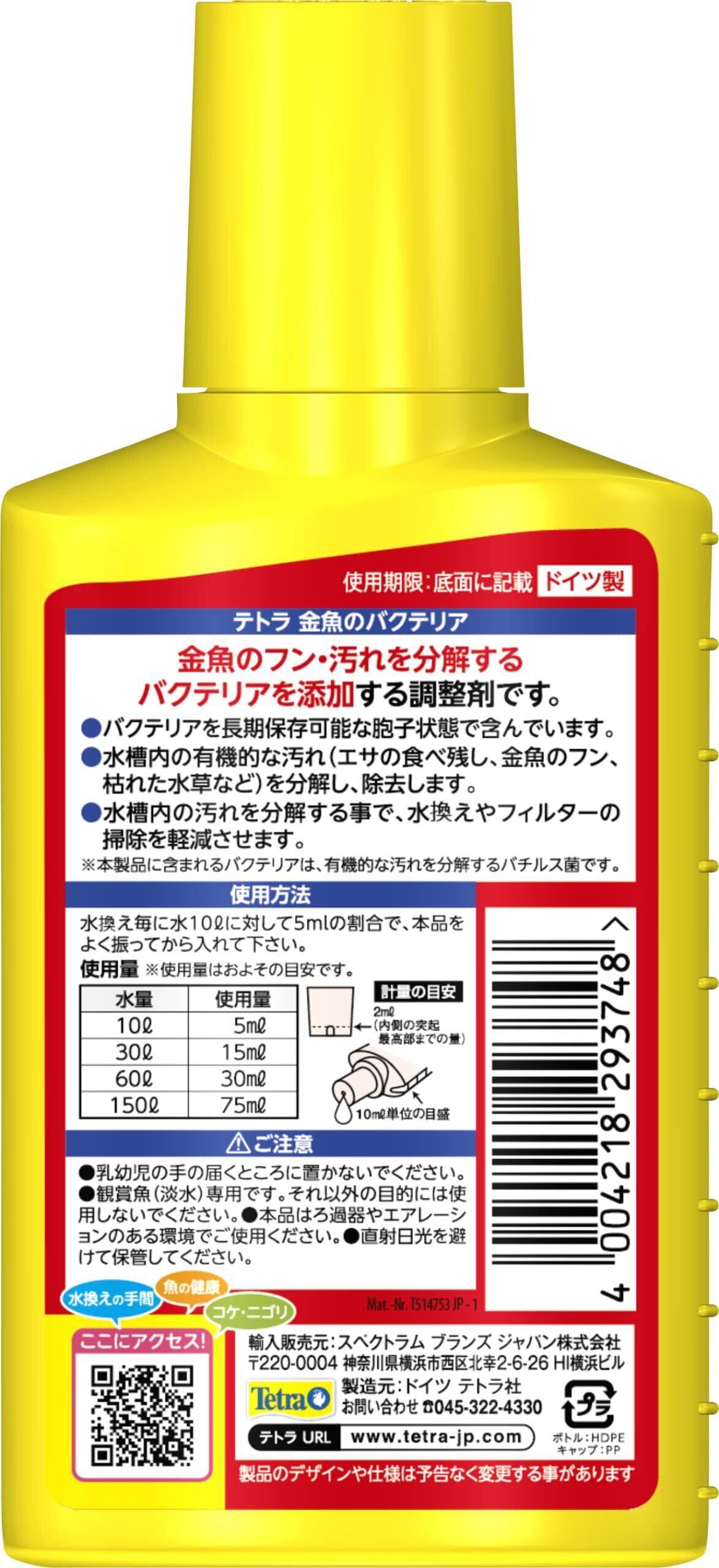 テトラ (Tetra) 金魚のバクテリア 100ミリリットル 水槽の汚れを分解するお掃除バクテリア添加剤 バチルス菌がフンを分解 はたらく善玉菌 にごりもスッキリ 長期保存可能