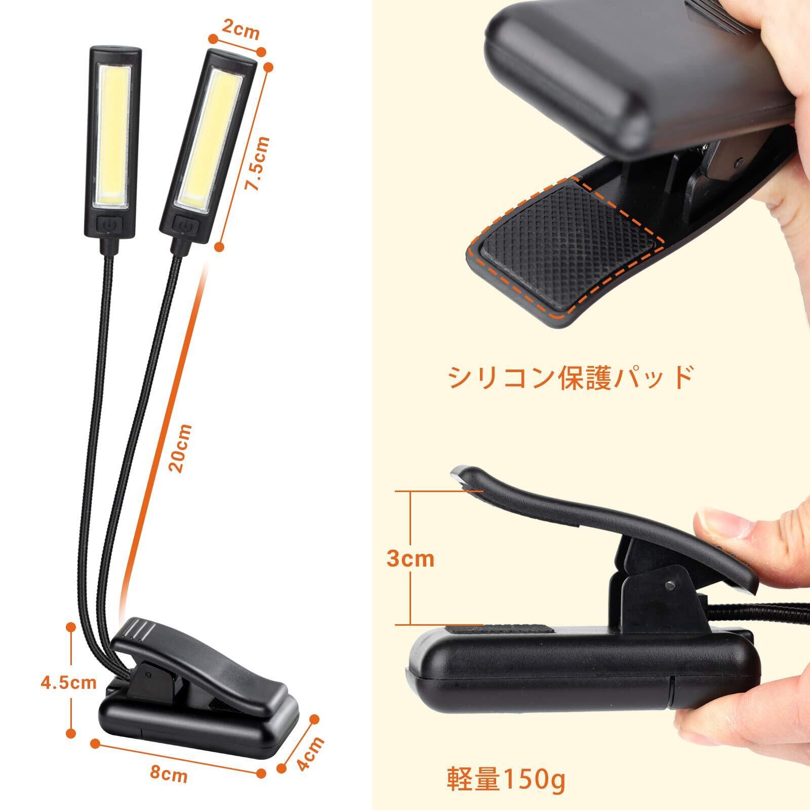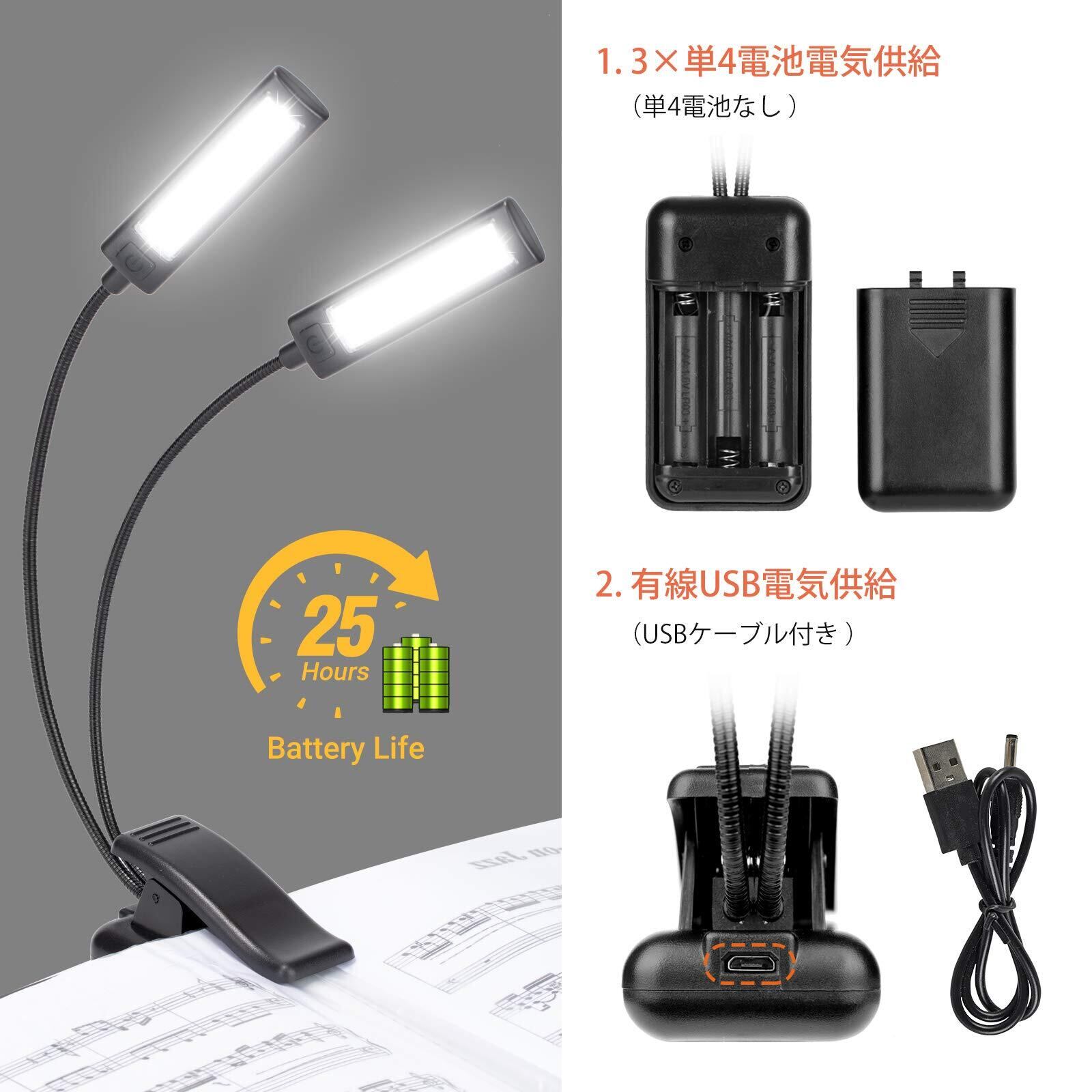 【多用途】このクリップライトは、譜面台用ライトとしての用途以外、ピアノ用ライト、エフェクターボード用ライト、野外での簡易照明、車の中へ持ち込んで室内灯などとしても使えます。