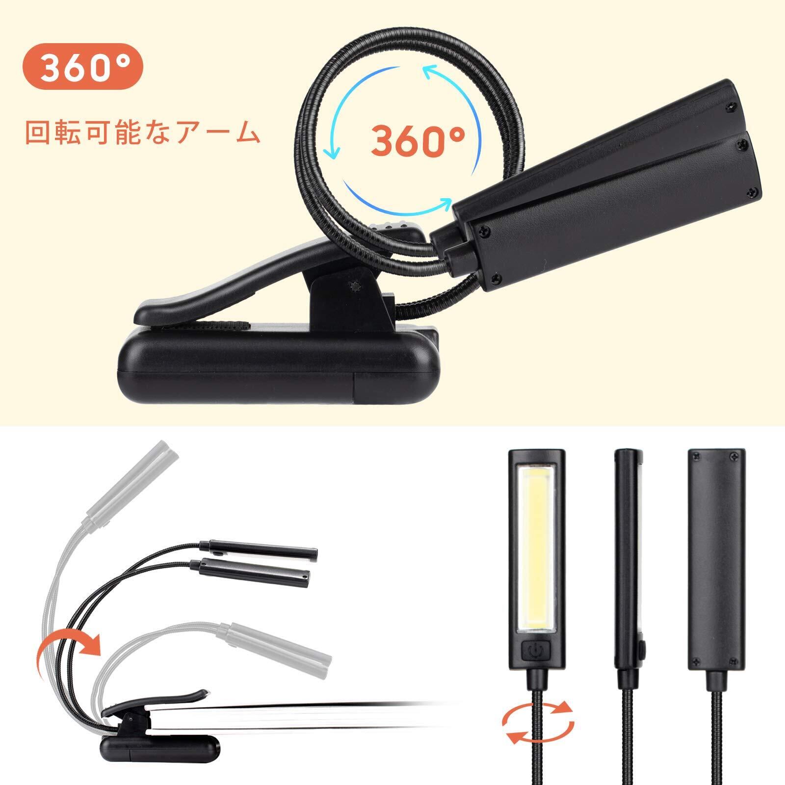 【360°回転調整可能】このクリップライトは、360°回転調整可能なので、任意の角度で照らすことができます。目によいのです。