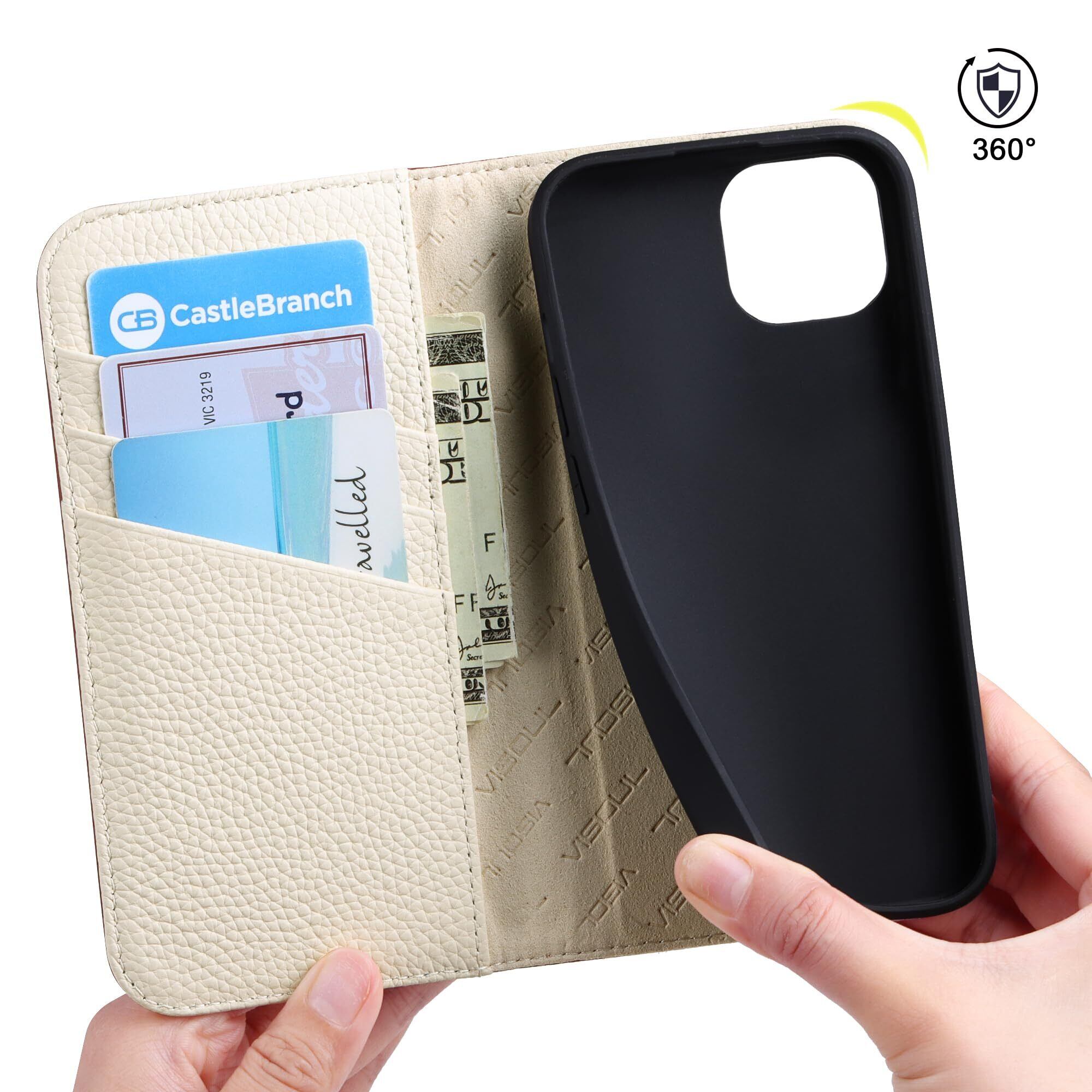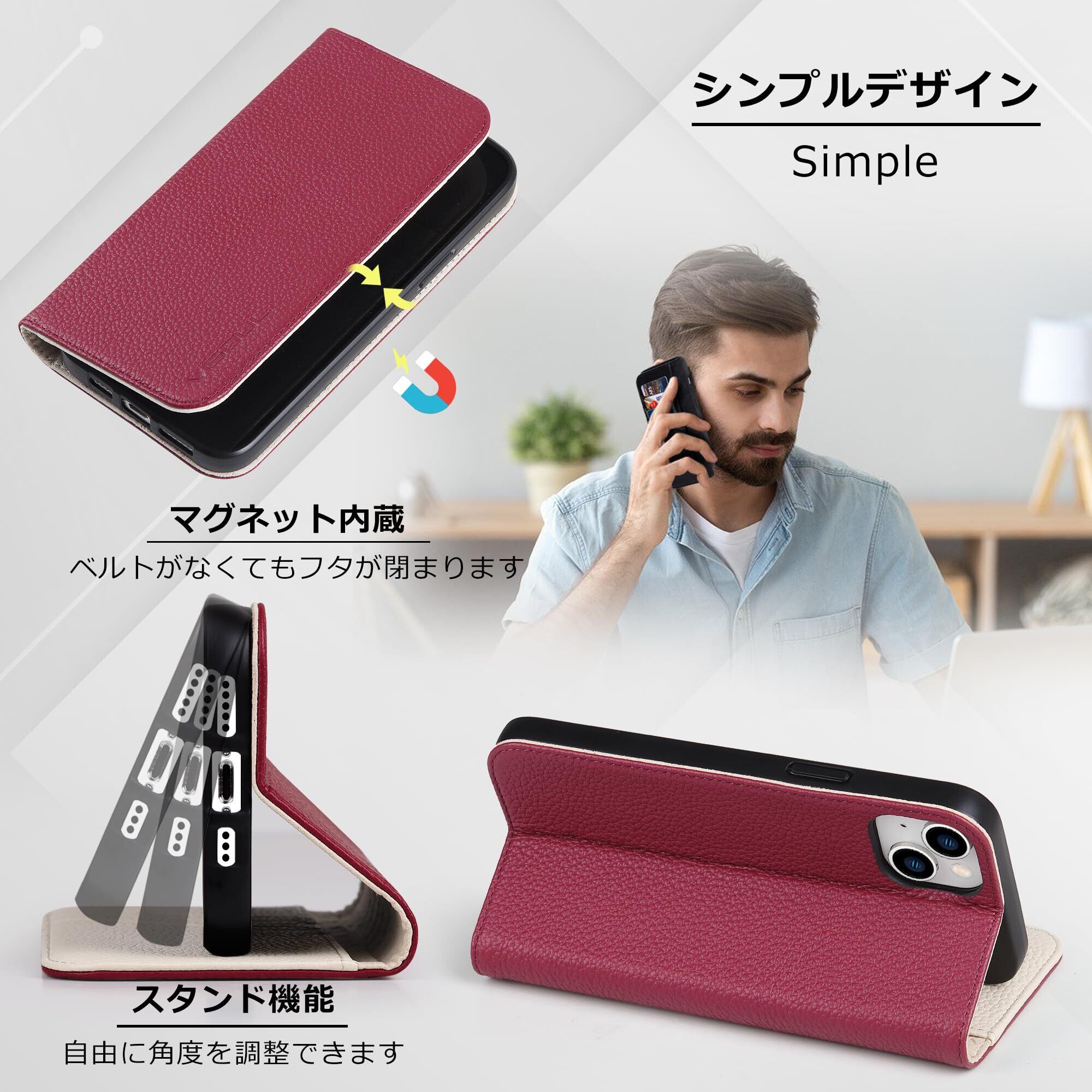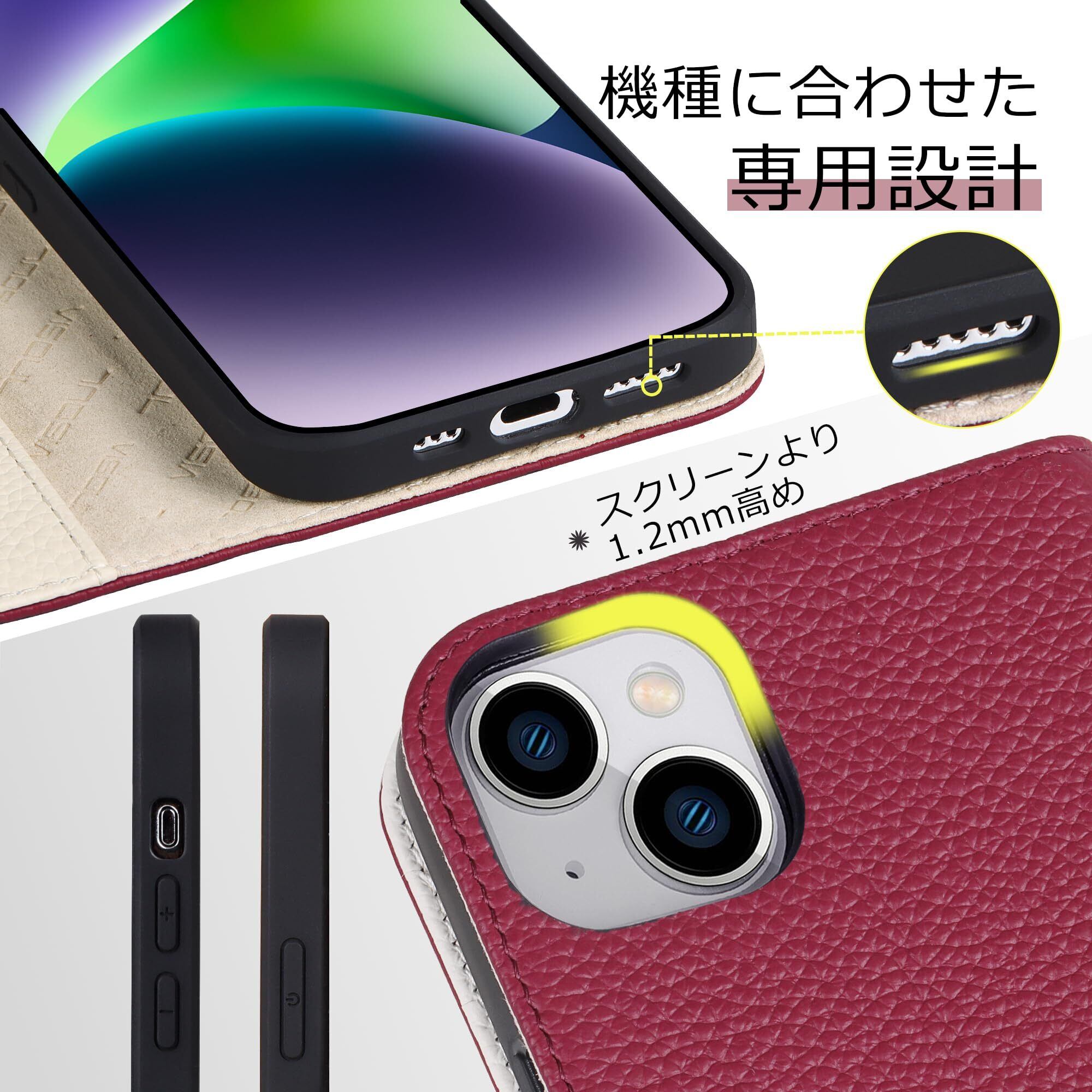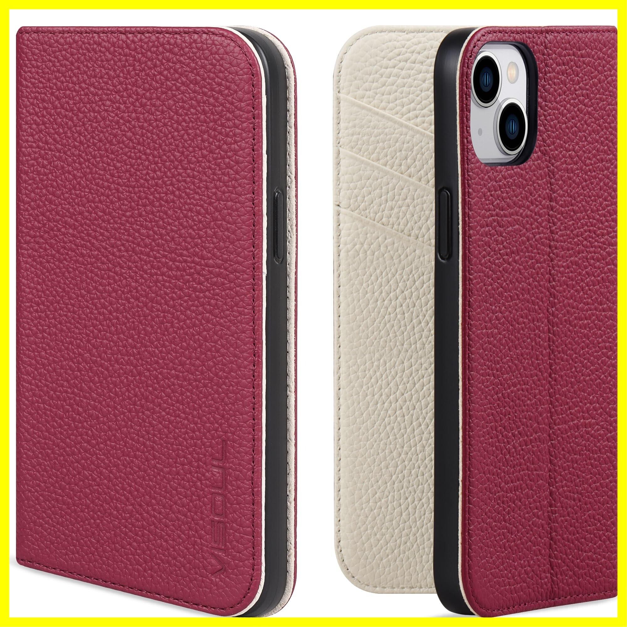 VISOUL iphone14 ケース 手帳型 本革 スマホケース アイフォン14手帳型ケース レザー カード収納 携帯ケース 全面保護 柔軟なTPU素材 マグネット式 スタンド機能付き アイホン14 対応 6.1インチ iphone 14 レッド ホワイト