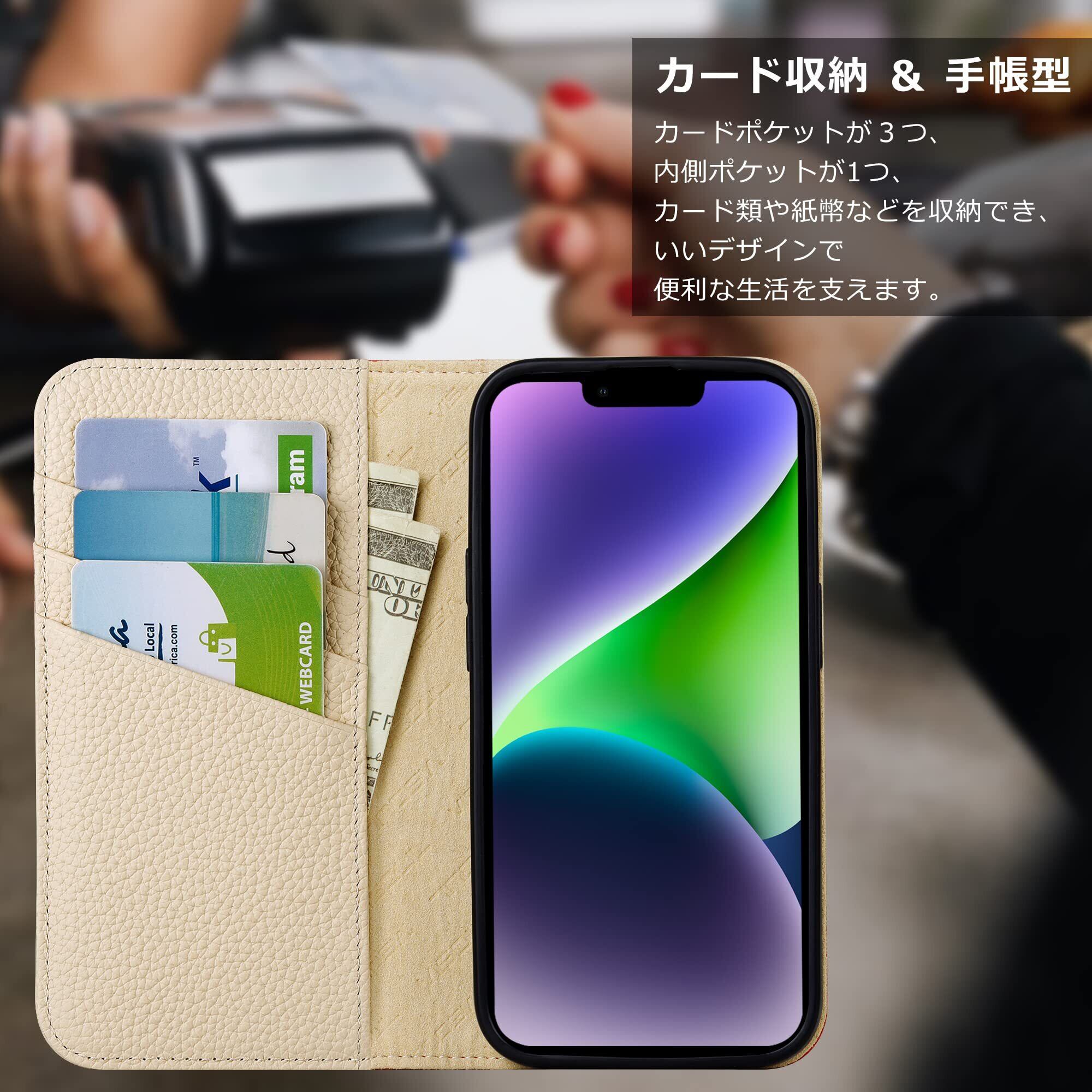【多機能:収納機能、横置きスタンド】①内側に実用性のカード入れポケット×3、内側ポケット×1、カード類、ポイントカードなどを収納でき、通勤も通学にも楽々タイプです。②横置きスタンド機能が付きまして、好きな角度を調節できて、手放しでも動画視聴や読書に楽しめる。③マグネットが内蔵されているので、ベルトがなくてもフタがぴったり閉まります。