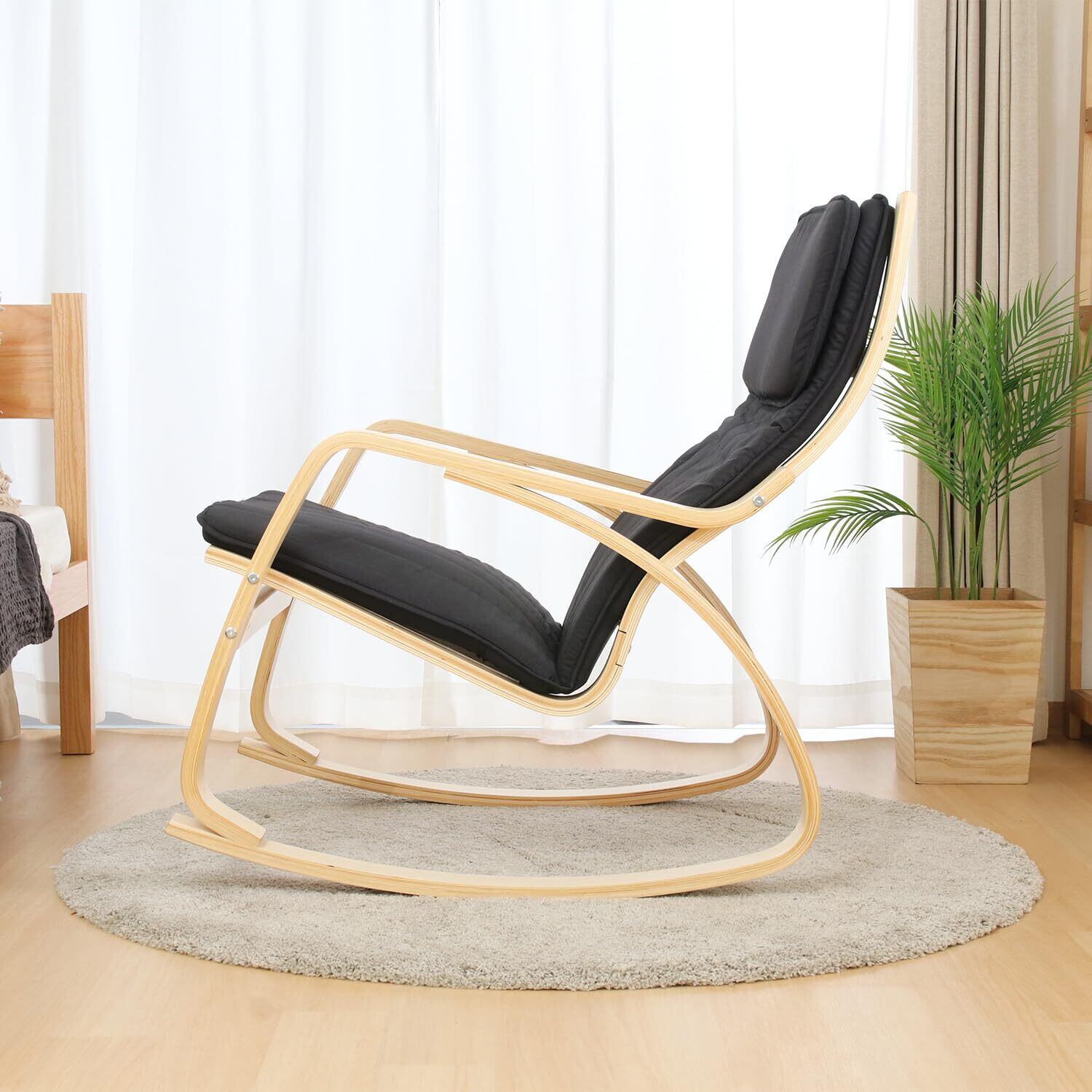 不二貿易 リラックスチェア ロッキングチェア 1人掛け 幅67×奥行96×高さ90cm ブラック 木製 曲木 組立商品 一人掛けソファ スリム 40815