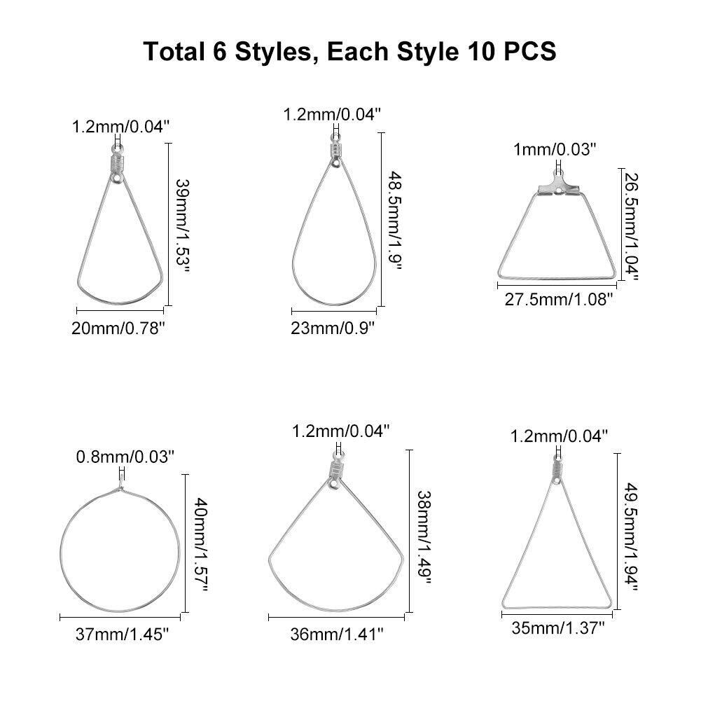 UNICRAFTALE 6種 60個 ピン0.7mm 混合形状 フープピアス 304ステンレス製ワイングラスチャームリング ドロップ 三角形 ファン 細め 細い ピアスリング ステンレス色 ピアスパーツ 両耳用 シンプル ユニセックス 耳飾り メンズレディジュエリー アクセサリーパーツ 手芸 DIY用品