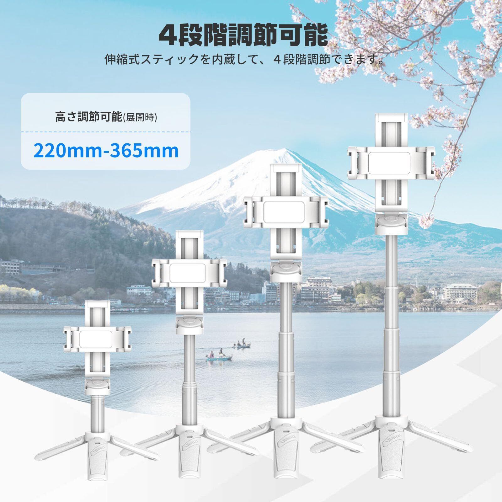 JJ02 多機能自撮り棒 折りたたみ ホワイト