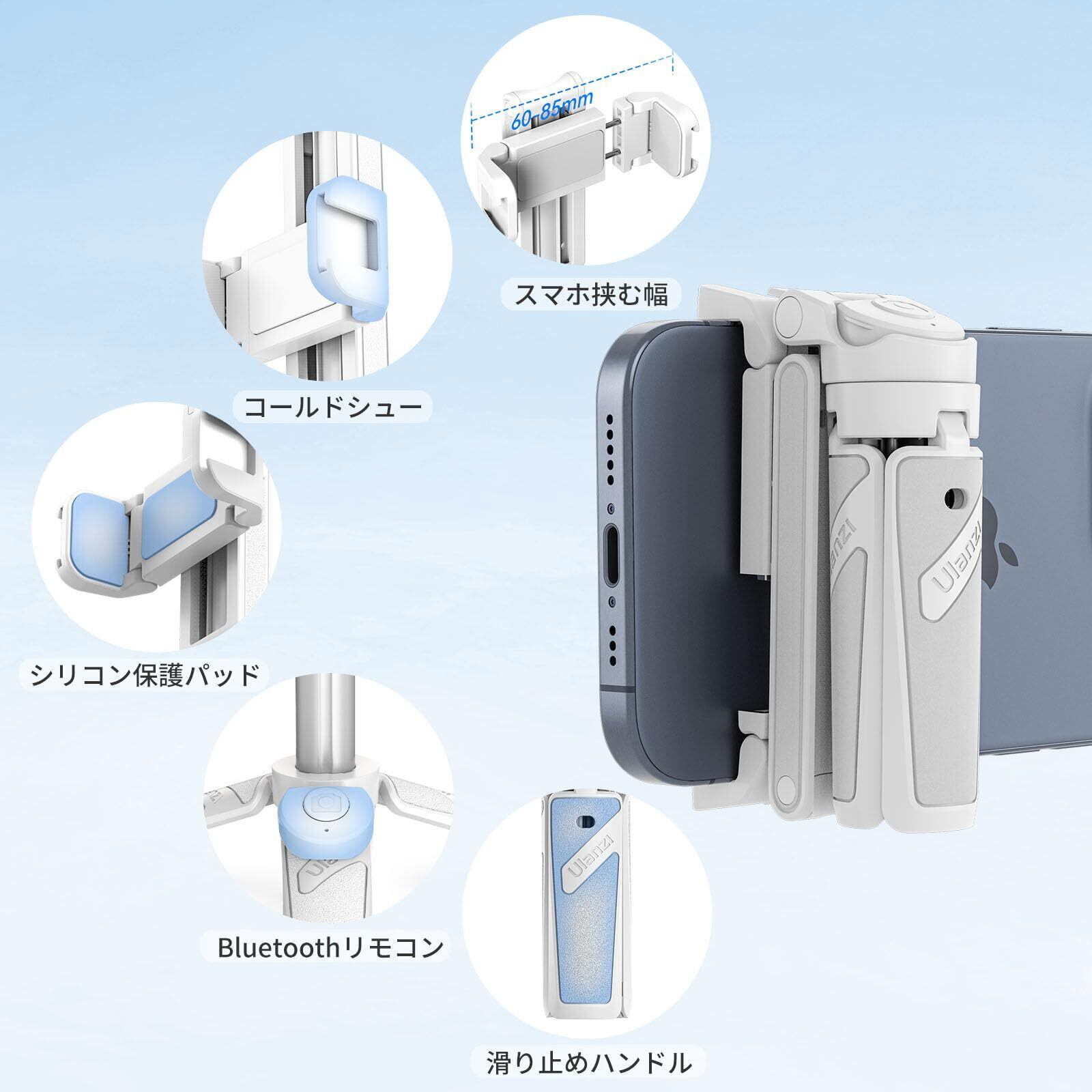 Ulanzi JJ02 自撮り棒 多機能スマホグリップ 三脚【2024新開発 ・超ミニ】4段階伸縮 折りたたみ式 スマートフォンホルダー スマホ 三脚 リモコン付き コールドシュー付き コンパクト iPhone Androidに対応 写真/旅行/動画を撮る/セルフィー/生放送に最適 ホワイト