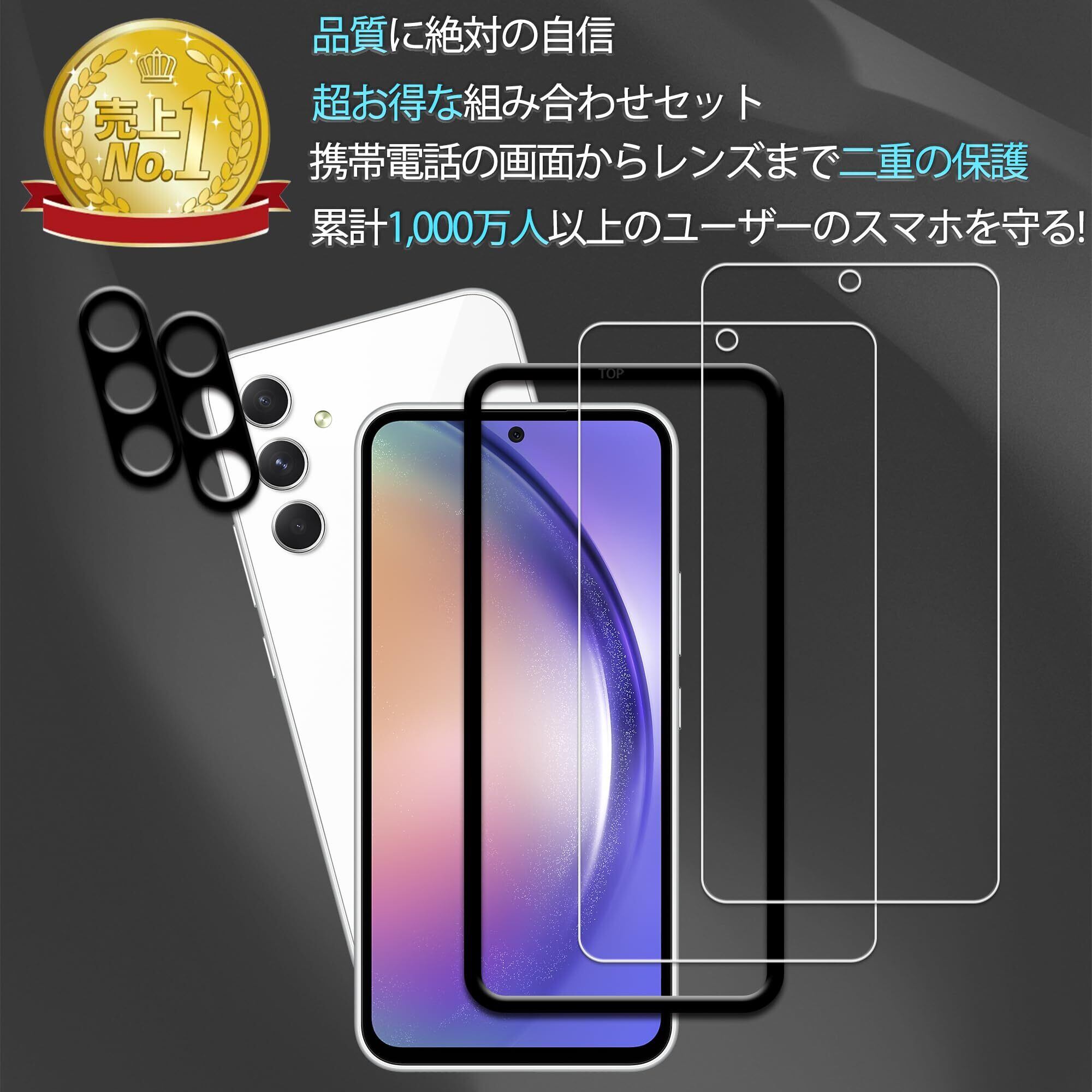 【2+2枚セット】ガイド枠付き KPNS 日本素材製 強化ガラス Galaxy A54 5G SC-53D SCG21 用 ガラスフィルム カメラフィルム カバー 保護フィルム