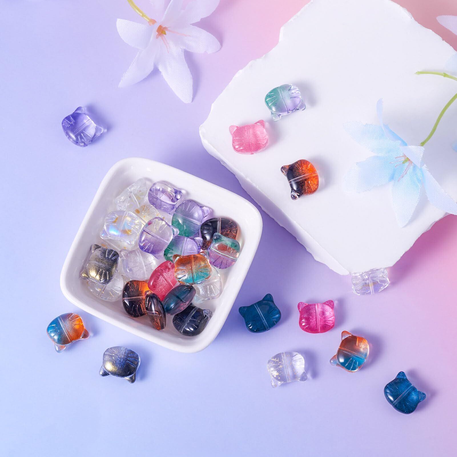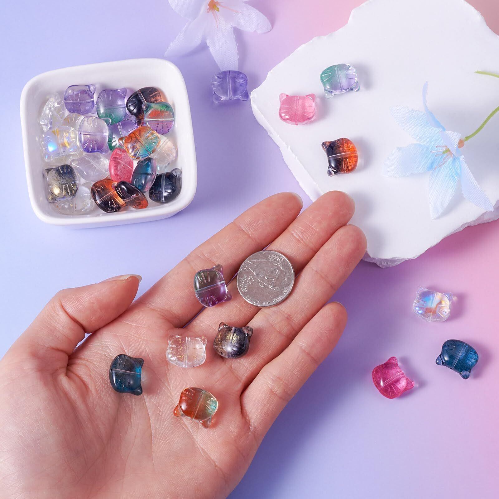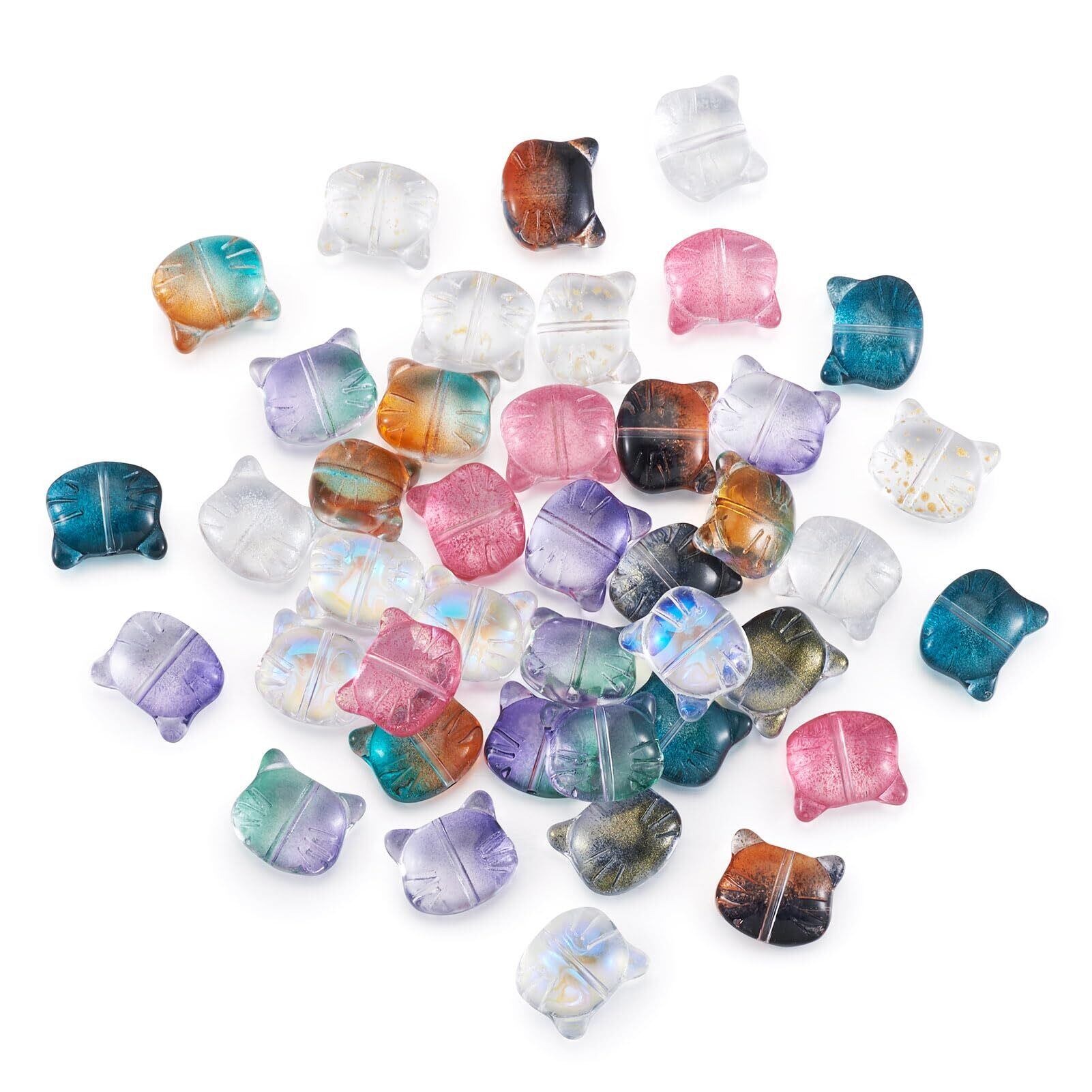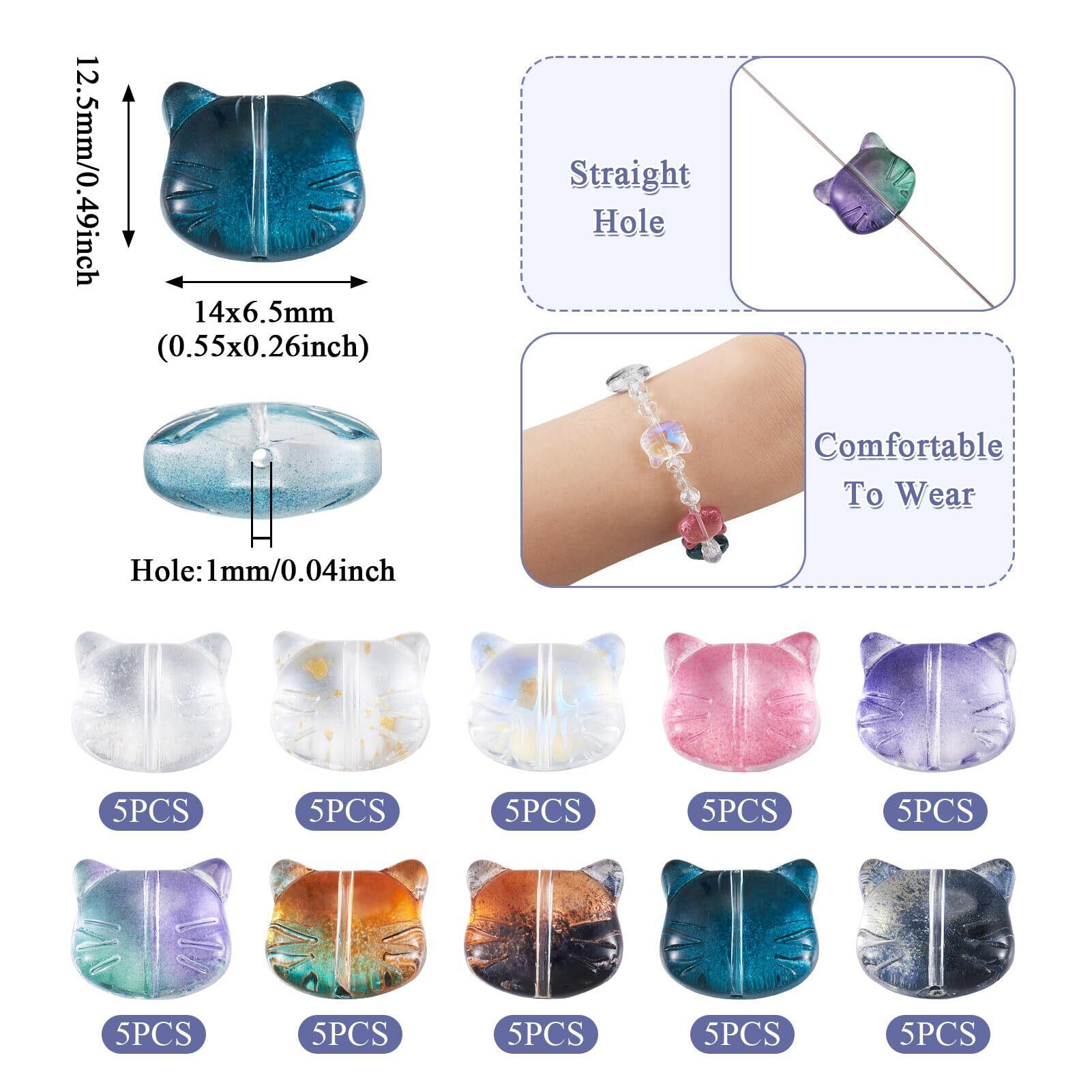 Beadthoven 約50個 カラー透明 猫 ガラスビーズ ネコ ペット かわいい スペーサービーズ チャームビーズ 動物 アクセサリーパーツ ジュエリー用 DIY ハンドメイド ピアス ブレスレット 手芸材料 手作り素材 クラフト用品 12.5x14x6.5mm