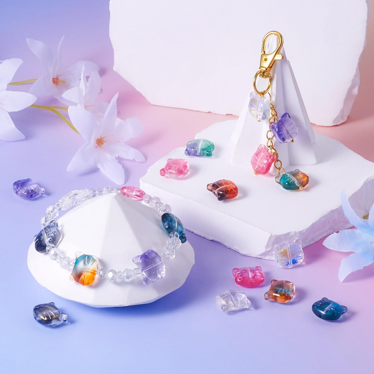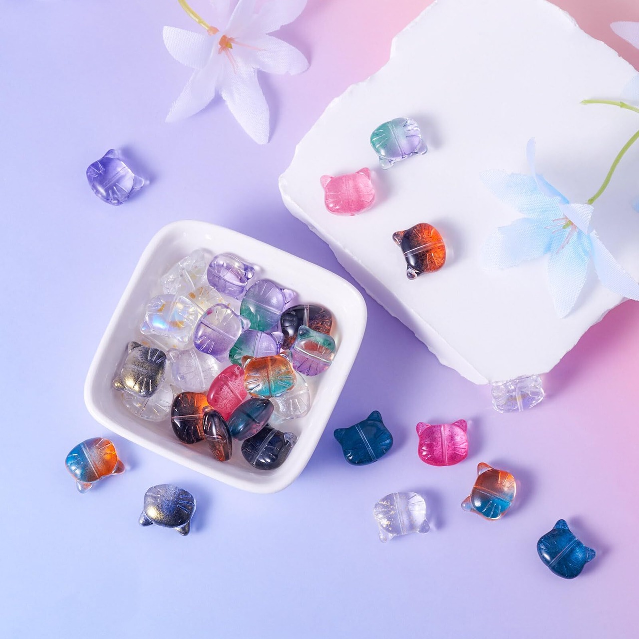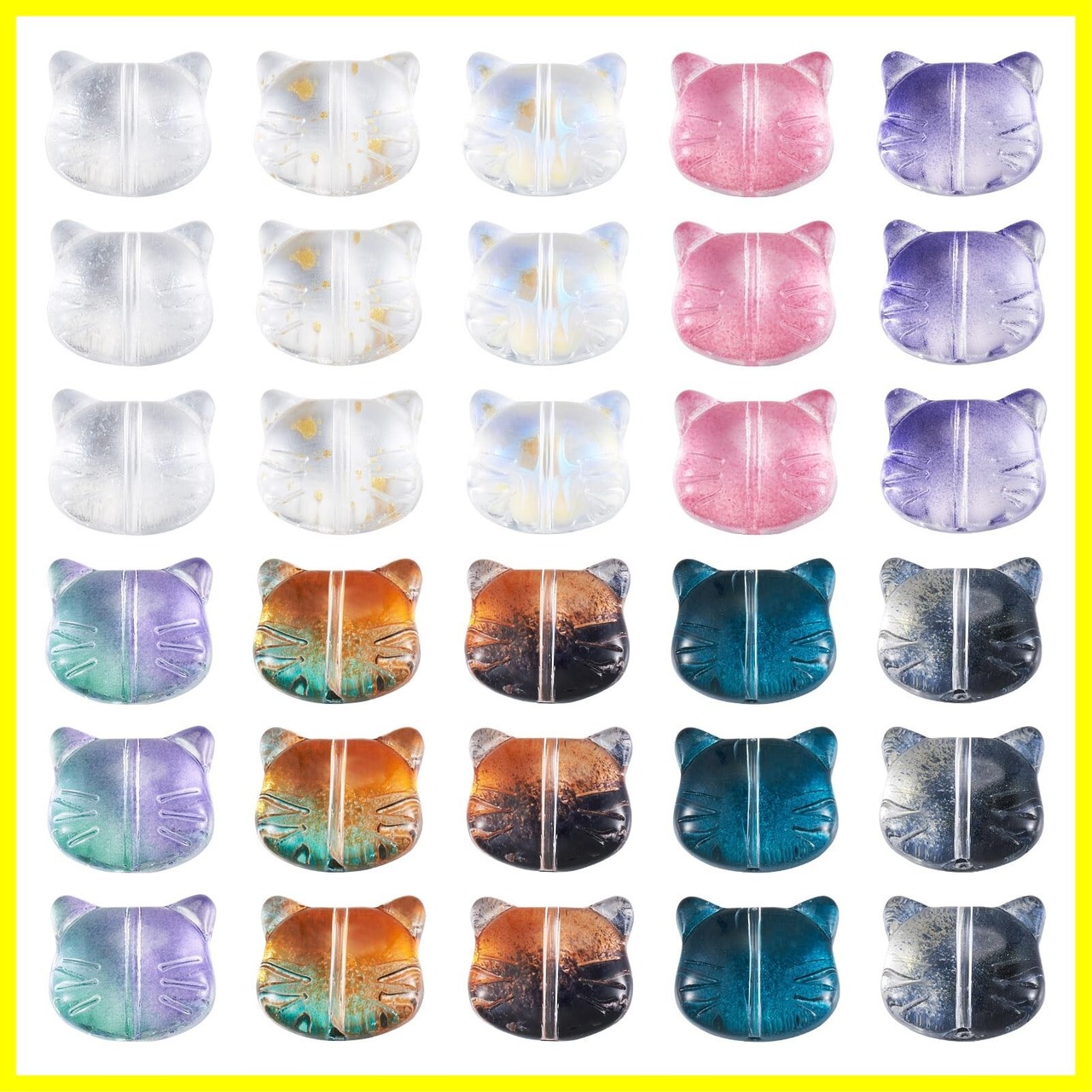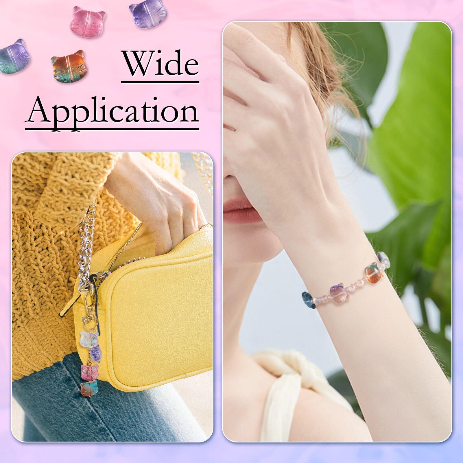 【特徴】:これらのガラスビーズは、美しい猫の形、透明なデザイン、センタードリル、可愛らしい猫のモチーフとポップカラーに合わせ、優雅で上品感を演出し、アクセサリーデザインに魅力を加えることができ