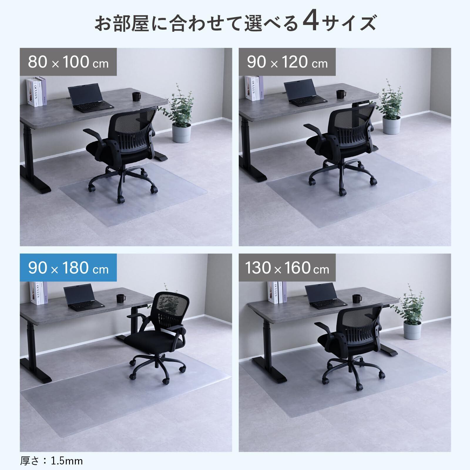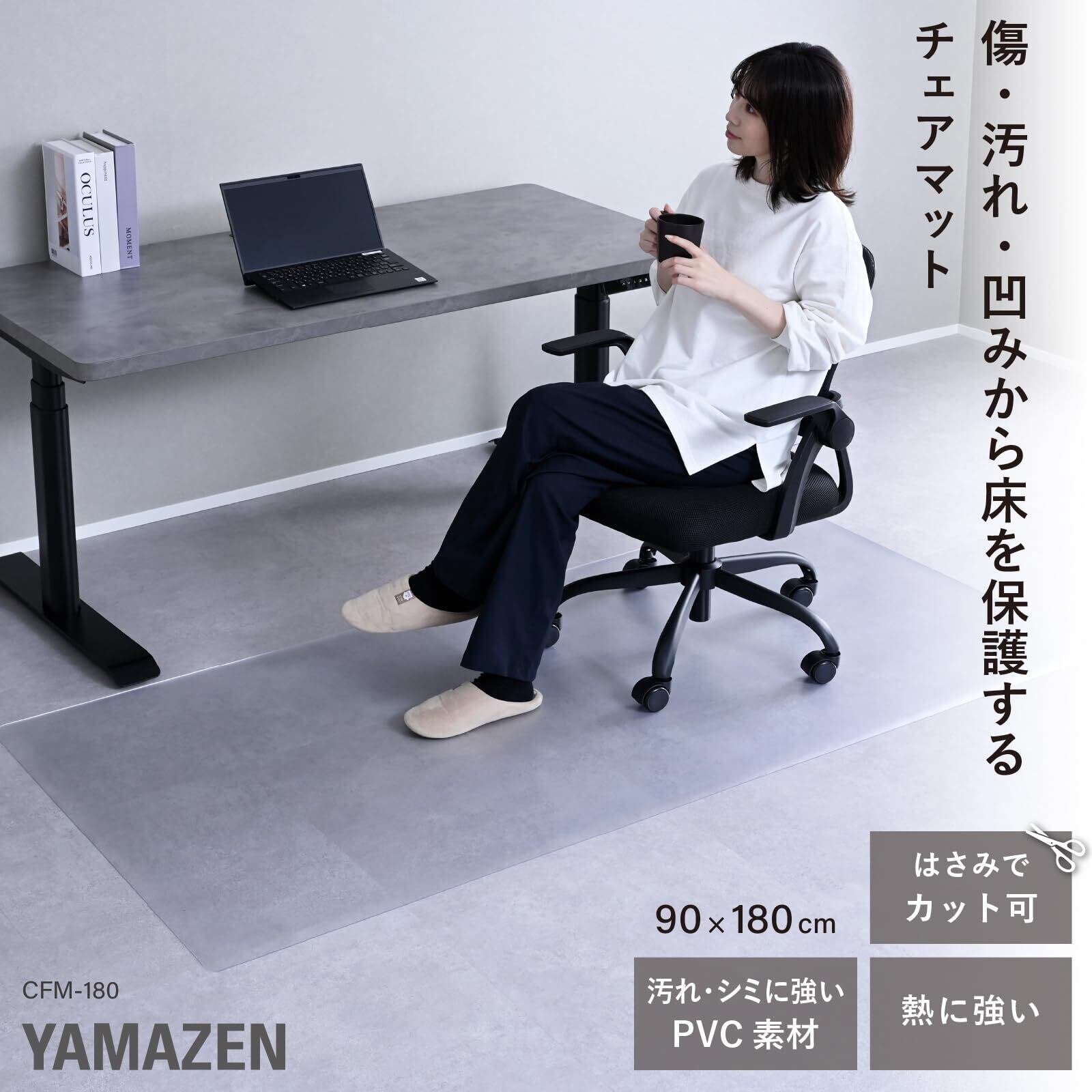 山善(YAMAZEN) チェアマット 椅子 マット 傷防止 シート 180×90cm 1.5mm厚 拭くだけお手入れ チェアーマット 床保護 クリア 透明 CFM-180