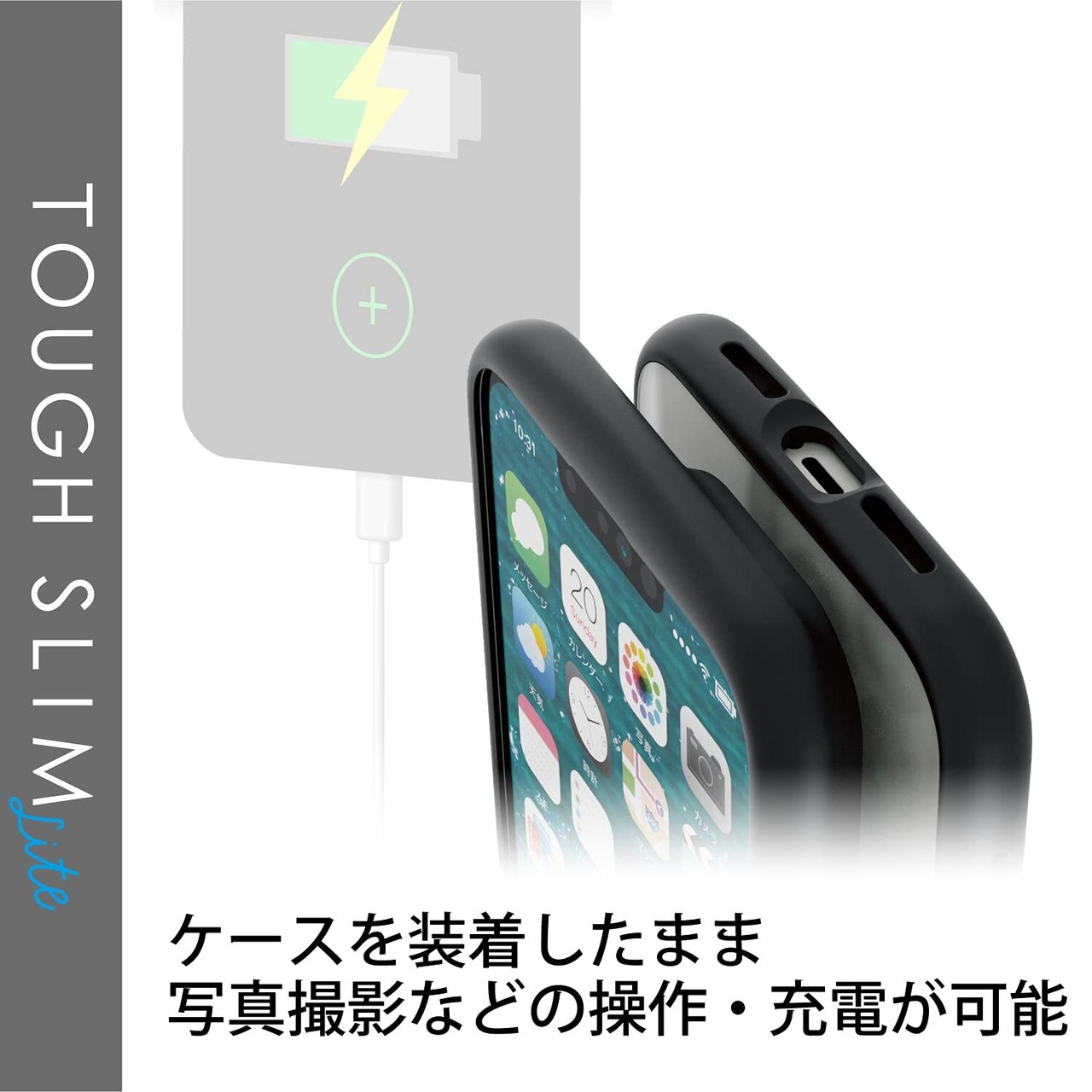 全周に配置した独自設計のエアクッションが衝撃を吸収し、背面には高硬度8Hの特殊樹脂を採用した、iPhone 13 Pro用TOUGH SLIM LITEケースです。