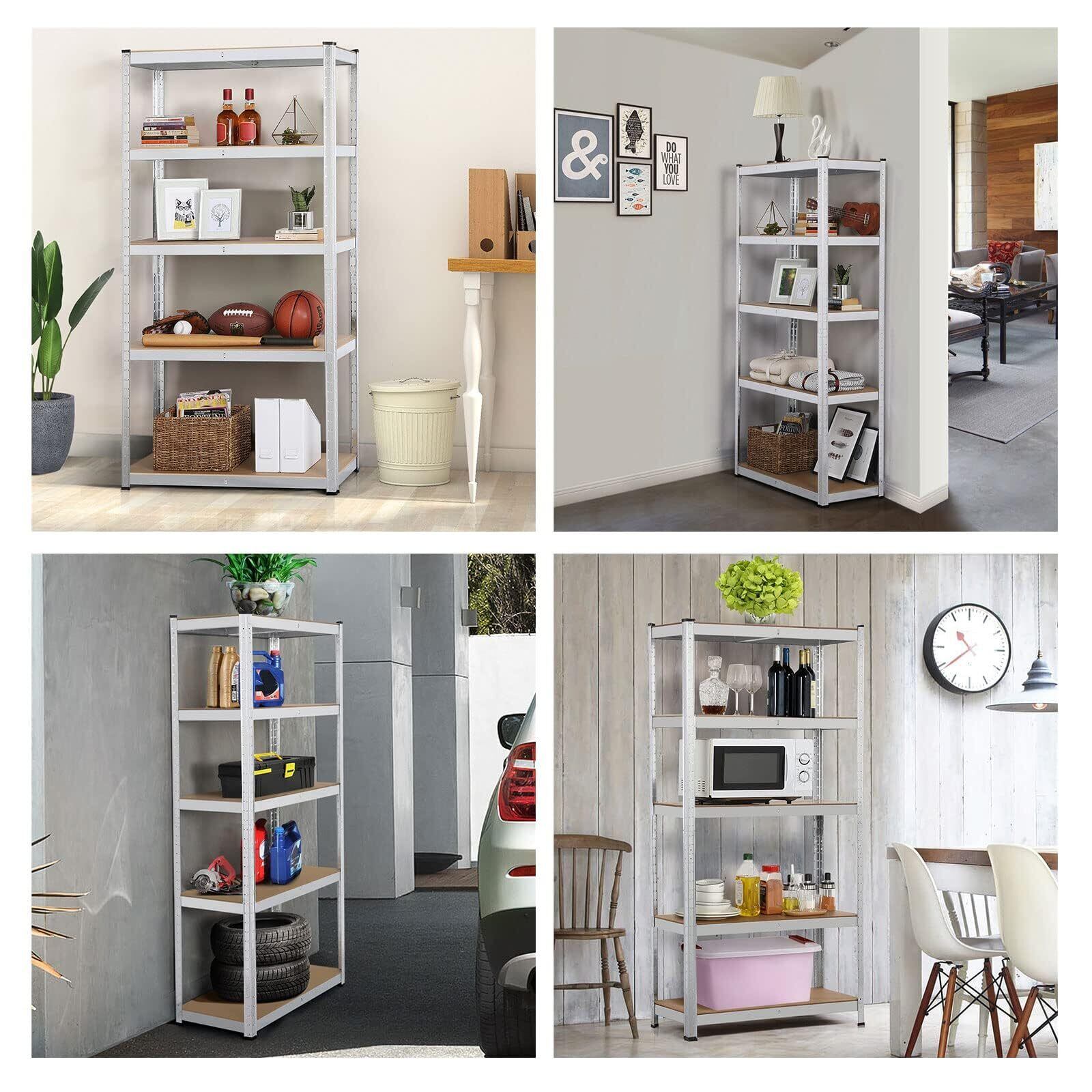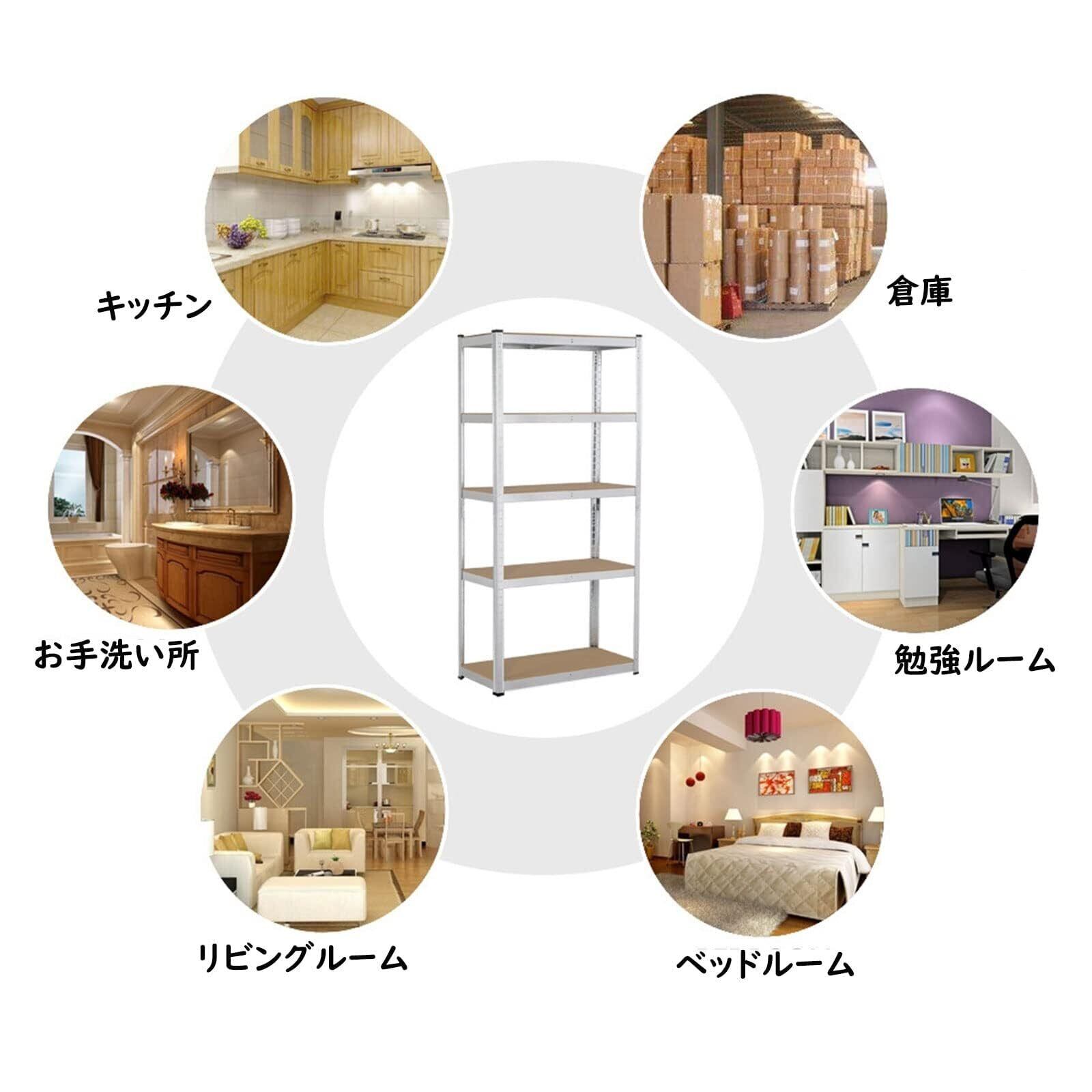 【多目的用途】五段の棚にはビニール製の脚が16あり、物置の収納棚に組み立てられますし、デスクとして平に置くこともできます。地下室、貯蔵室、作業室、お店、家庭、寝室、リビングルーム、キッチンなどに向いています。