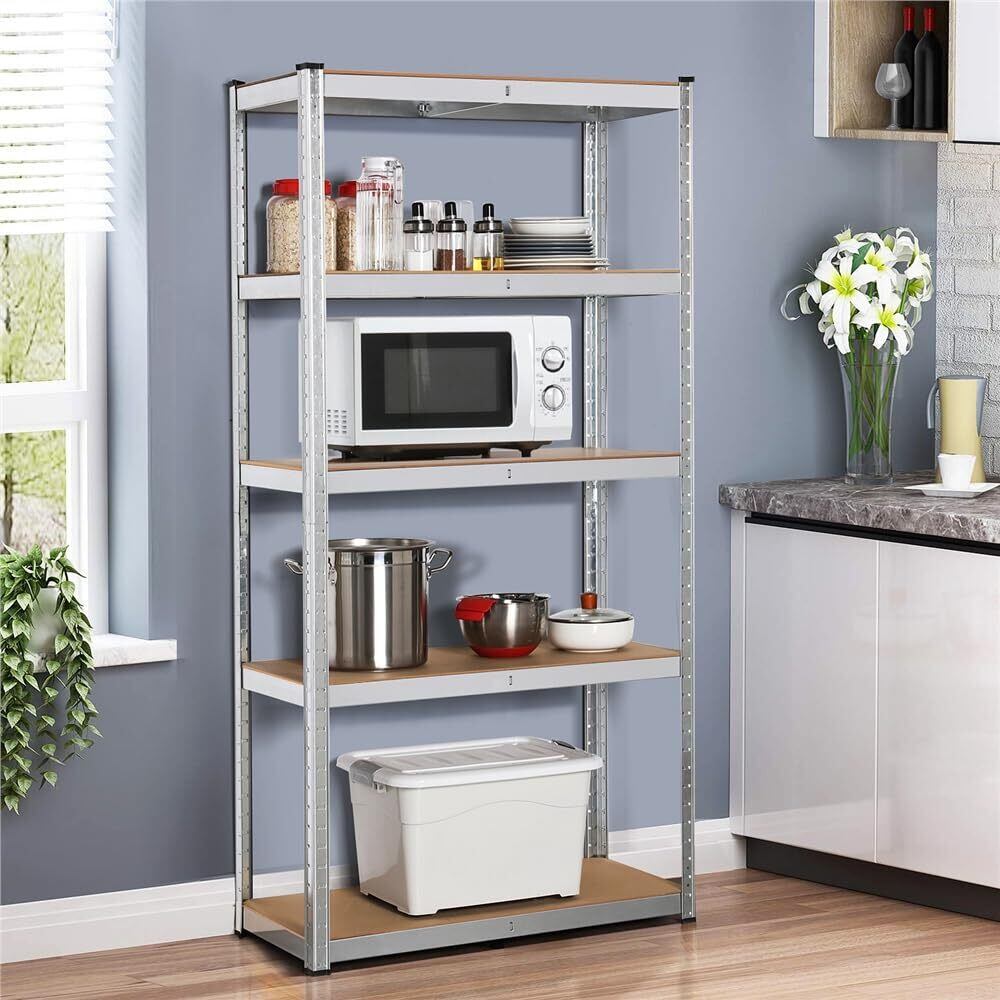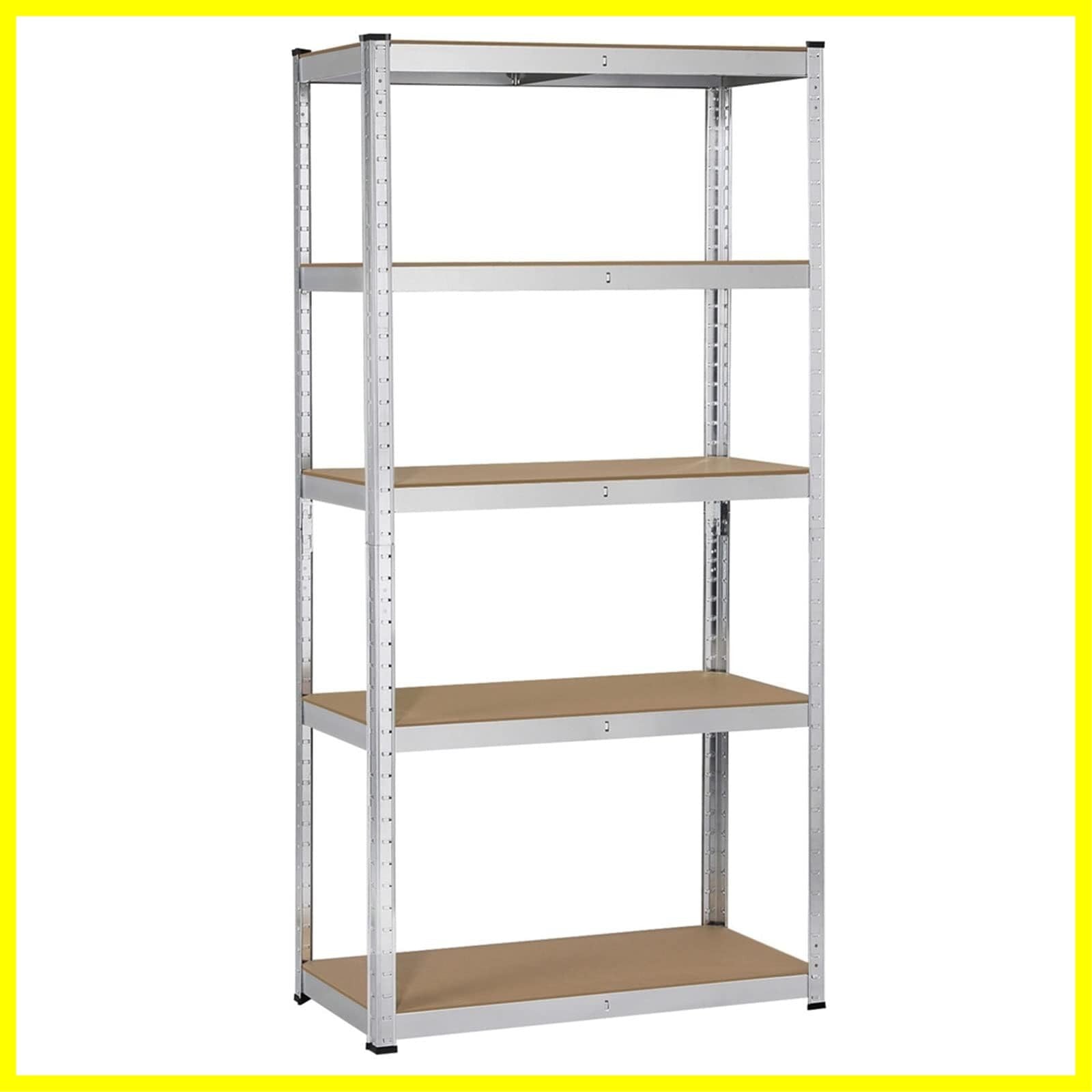 Yaheetech キッチンラック スチールラック本体 幅90 オープンシェルフ メタルラック 5段 収納棚 高さ調節可 ステンレスラック 収納ラック 防サビ加工 ネジなし 組立簡単 90×40×180cm 耐荷重875kg キッチン 物置 倉庫 ガレージ Silver
