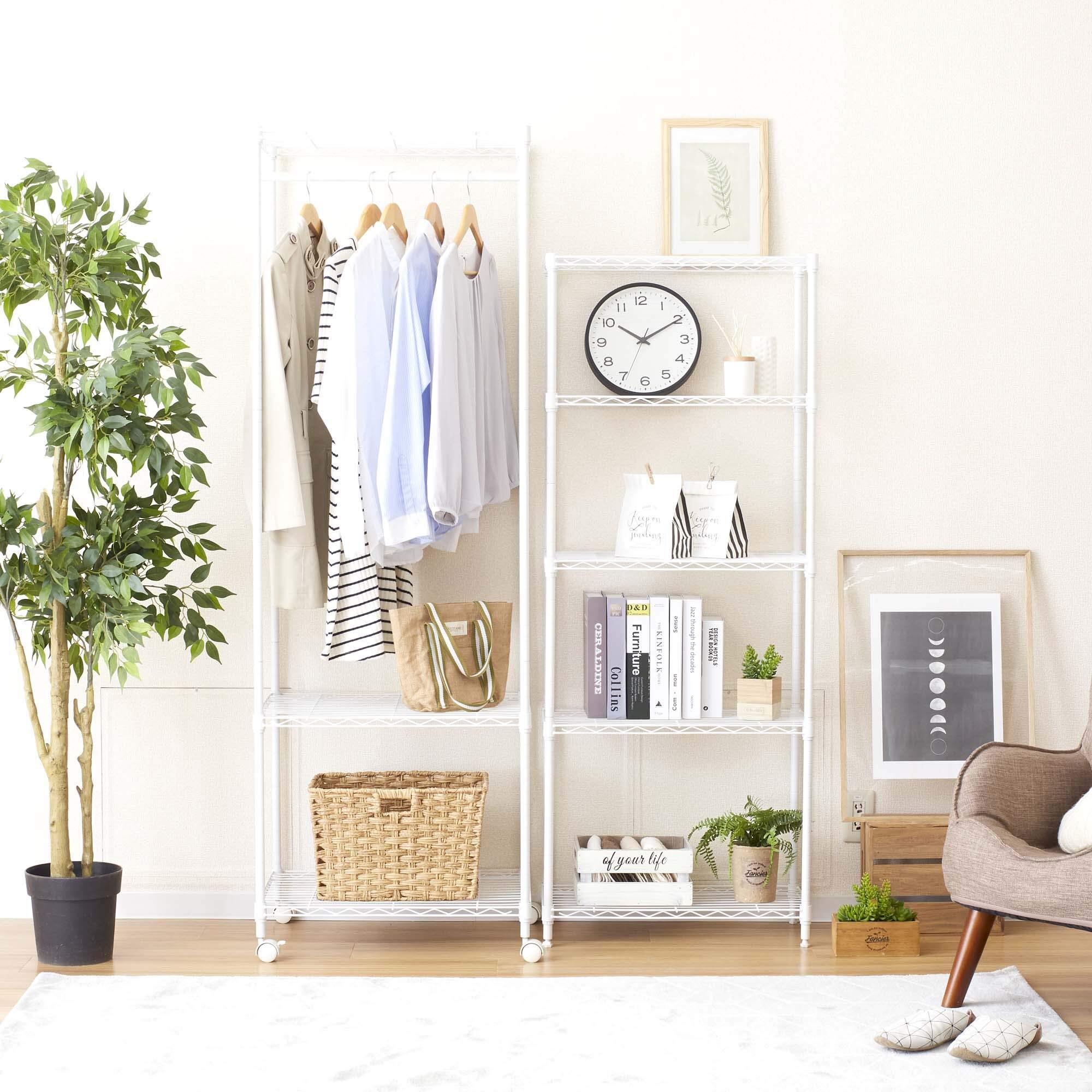 ドウシシャ ルミナス互換 5段 幅60 スリムスチールラック 棚 収納 白 ホワイト 全体耐荷重325kg 幅59.5cm×奥行29.5cm×高さ151.5cm M1560305WH 頑丈 ワイヤーシェルフ 奥行30 ポール径19mm パーツ対応 キッチン ランドリー