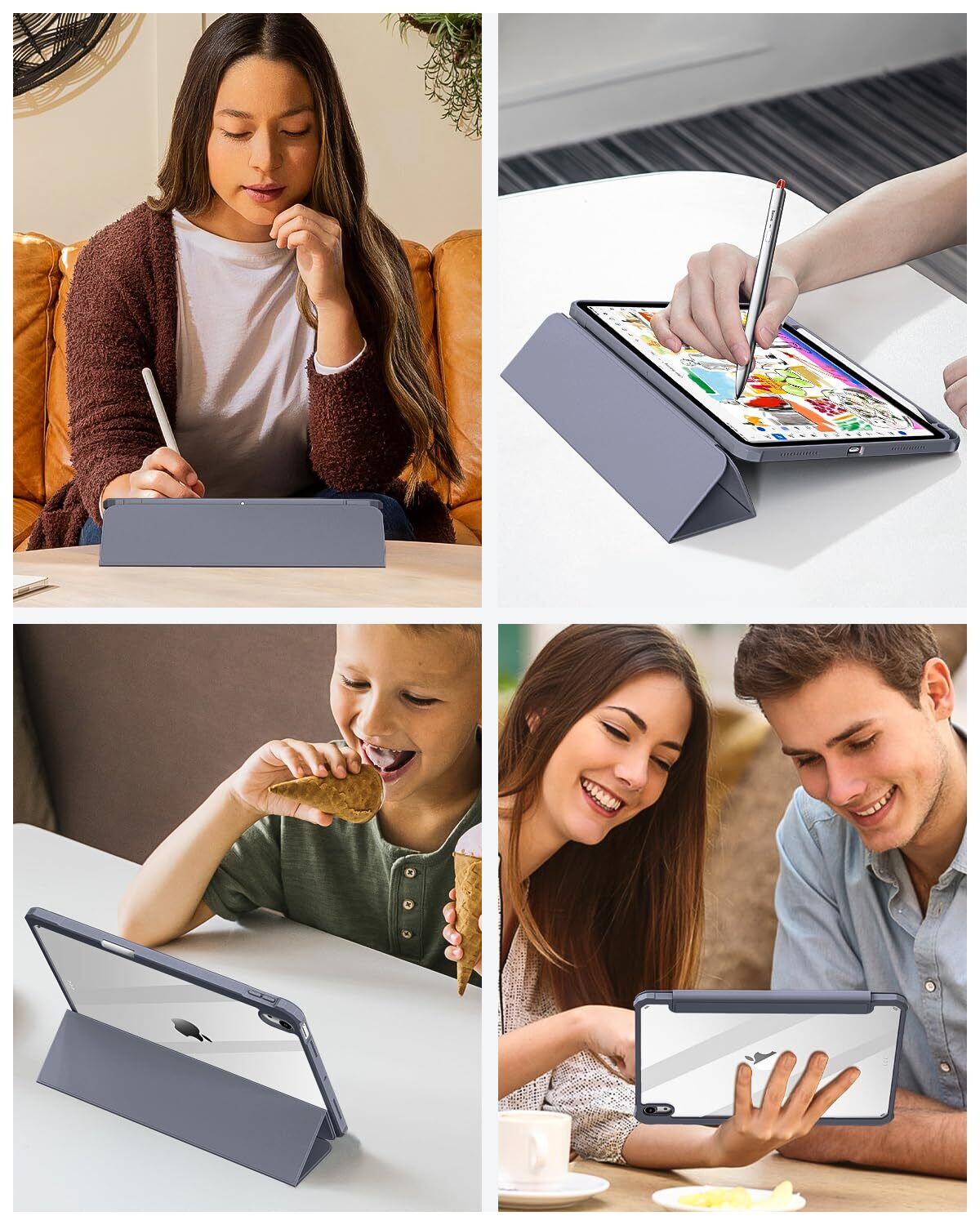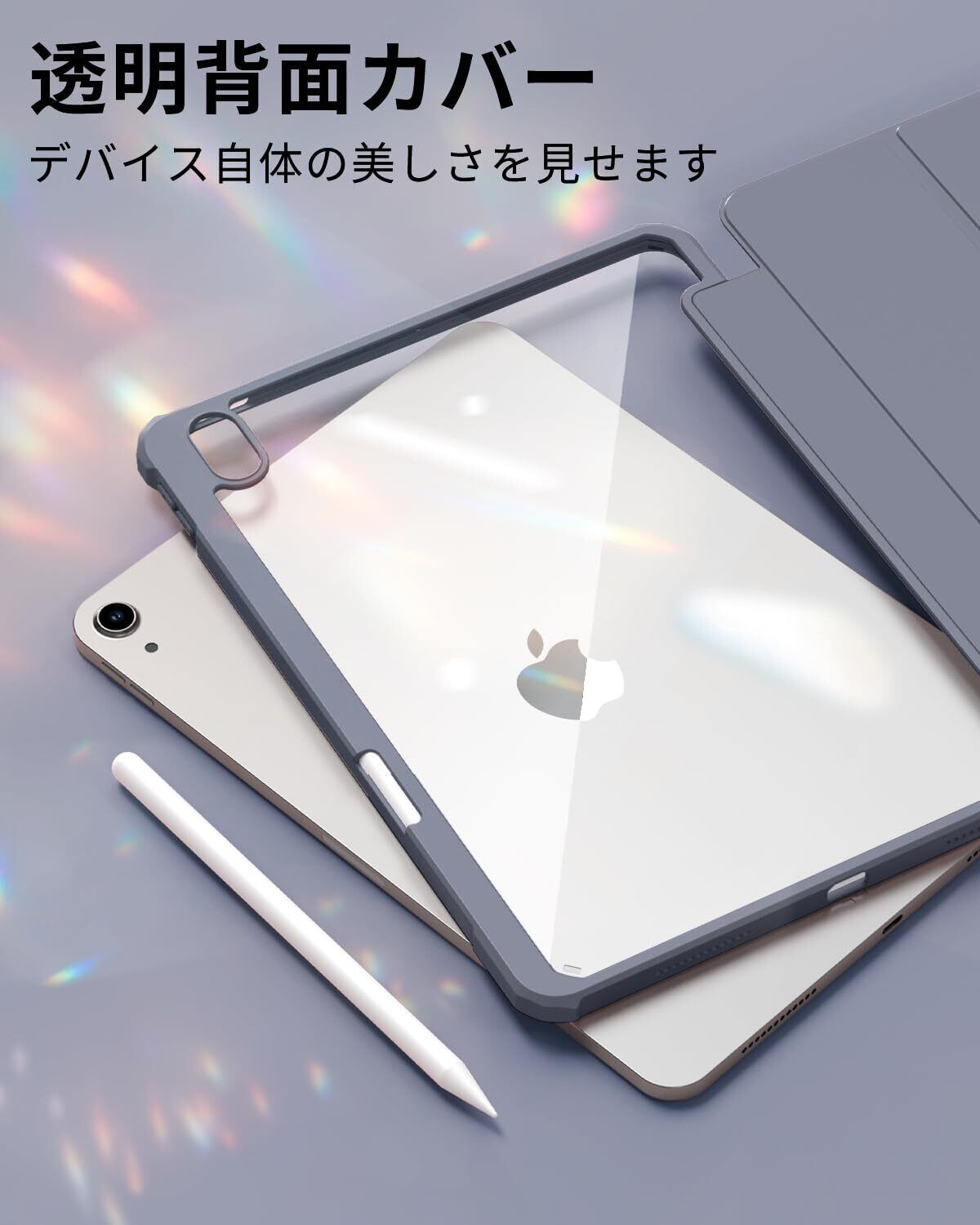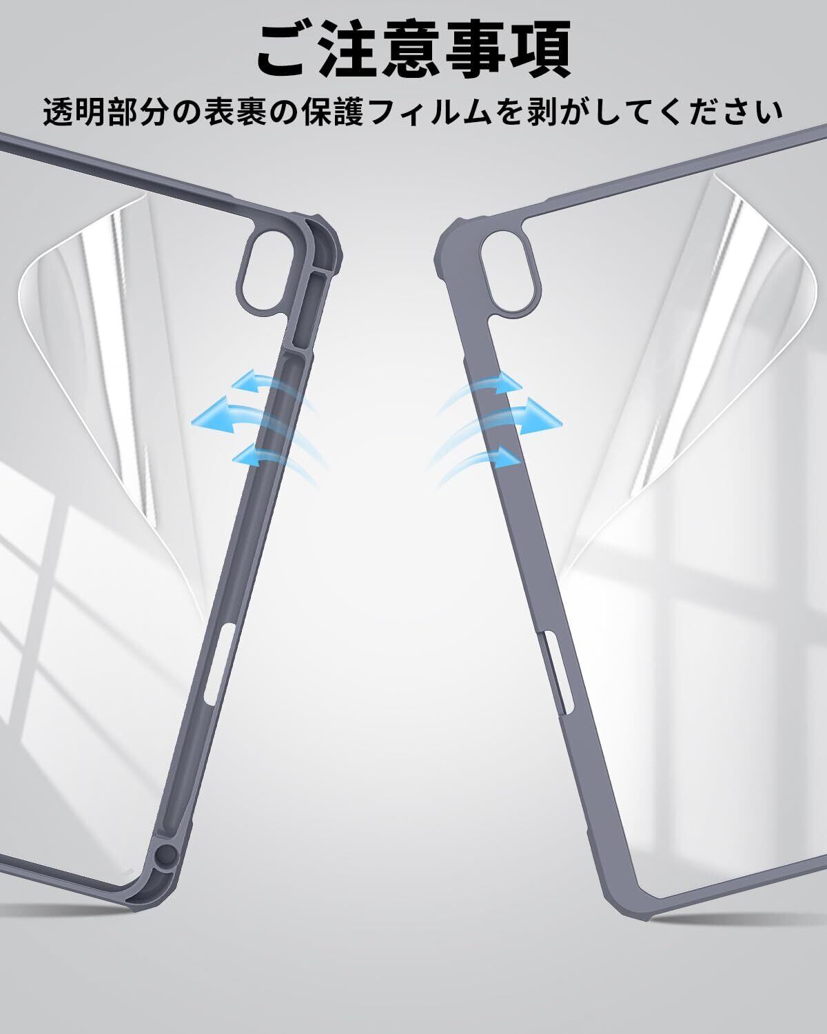 iPad 11世代 ケース A16 (2025) iPad 第11/10世代 10.9インチ (2022) 透明バックカバー ペンシルホルダー付き 三つ折りスタンド Touch IDとオートスリープ機能対応 軽量 薄型 傷つけ防止 PU合成レザー TPU グレーブルー