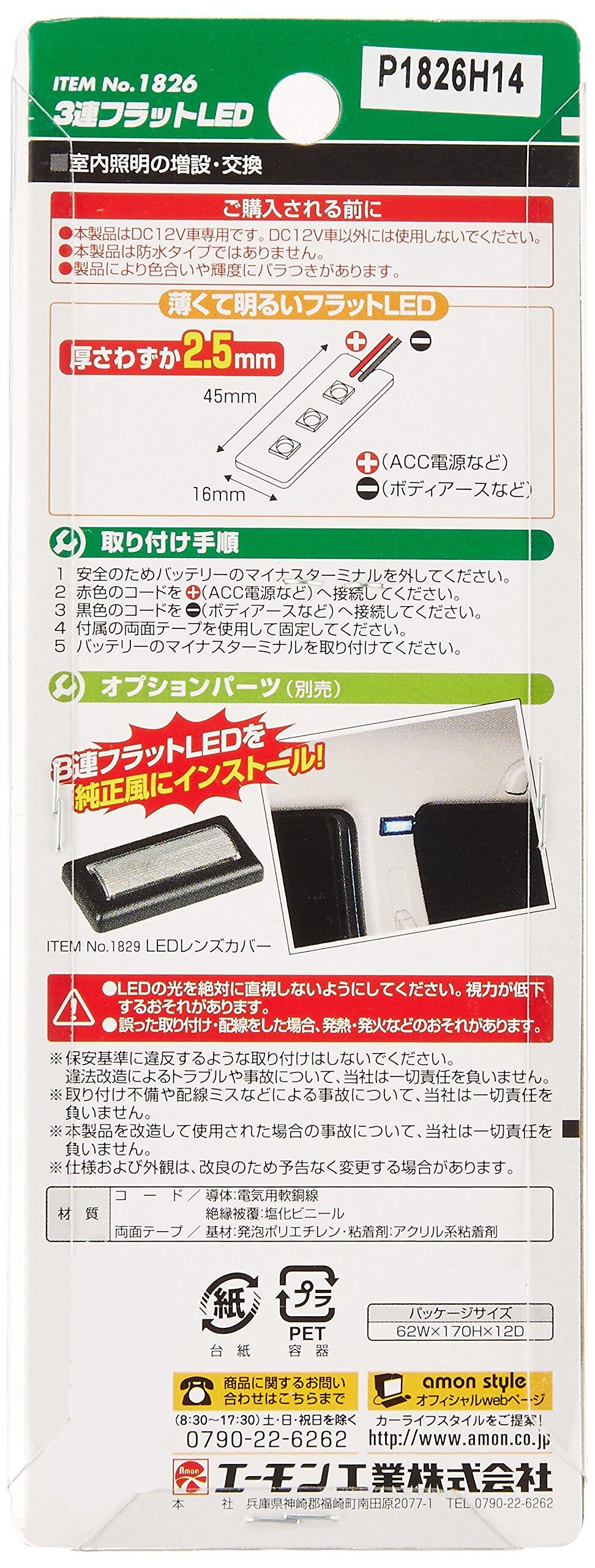 発光色:青 (3灯) ・DC12V車専用 ・消費電流:60mA ・コードサイズ:0.2sq相当-約200mm ・両面テープ付属