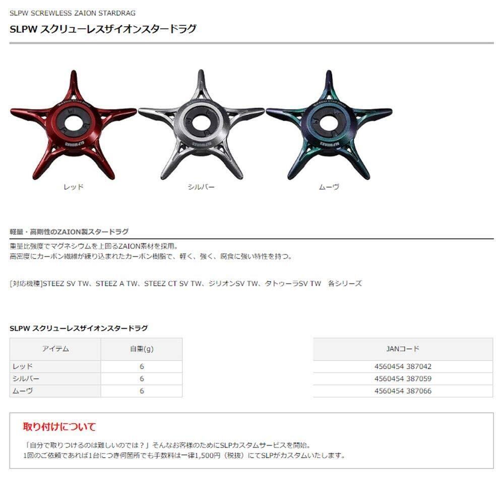 Daiwa SLP WORKS(ダイワSLPワークス) ドラグ SLPW スクリューレスザイオンスタードラグ ベイトリール用 リール