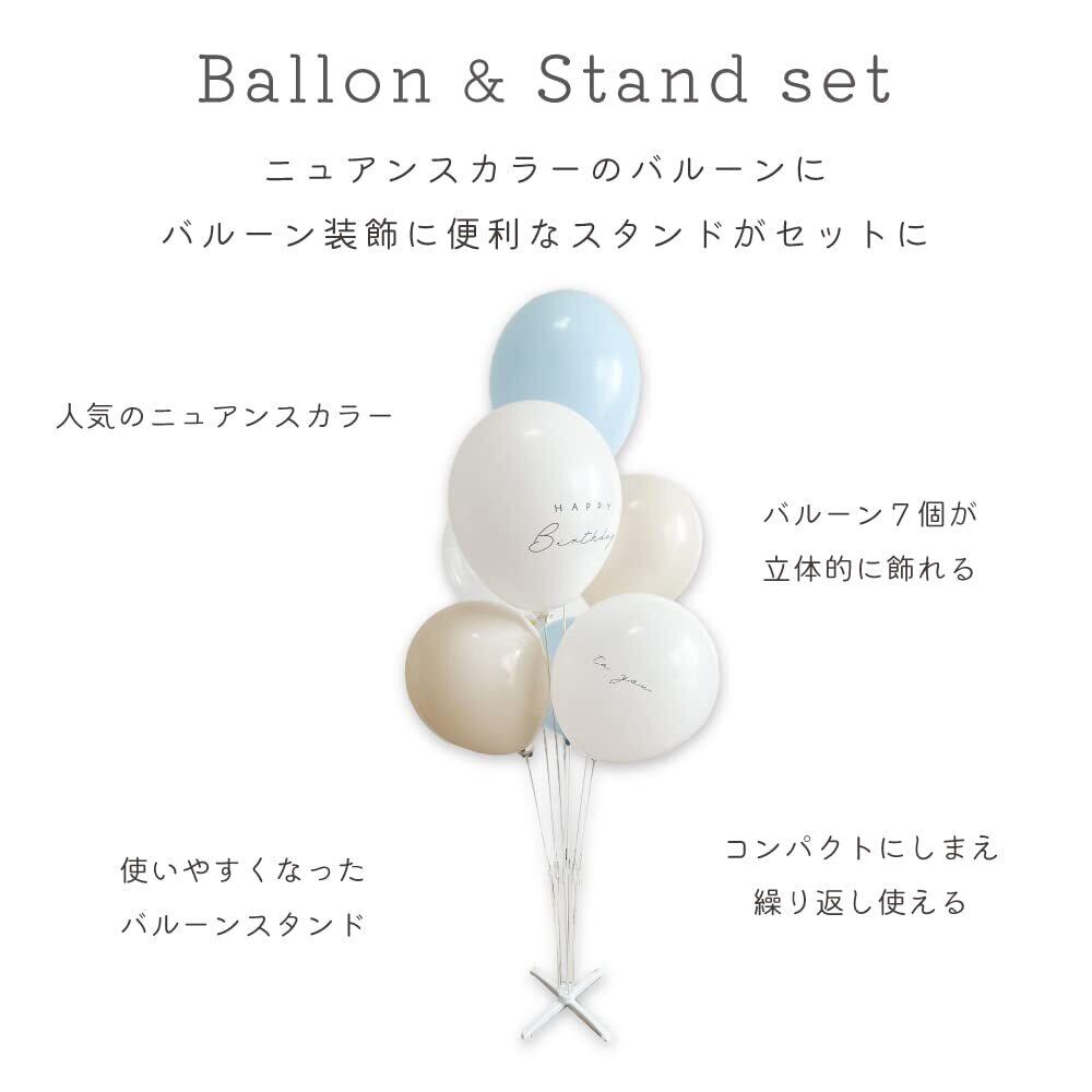 ハナメイ バースデー 飾り付け ニュアンス カラー レターバルーン HAPPY BIRTHDAY 風船 飾り くすみ 男 女 装飾 フォトブース (バルーン+スタンド パウダーブルー)