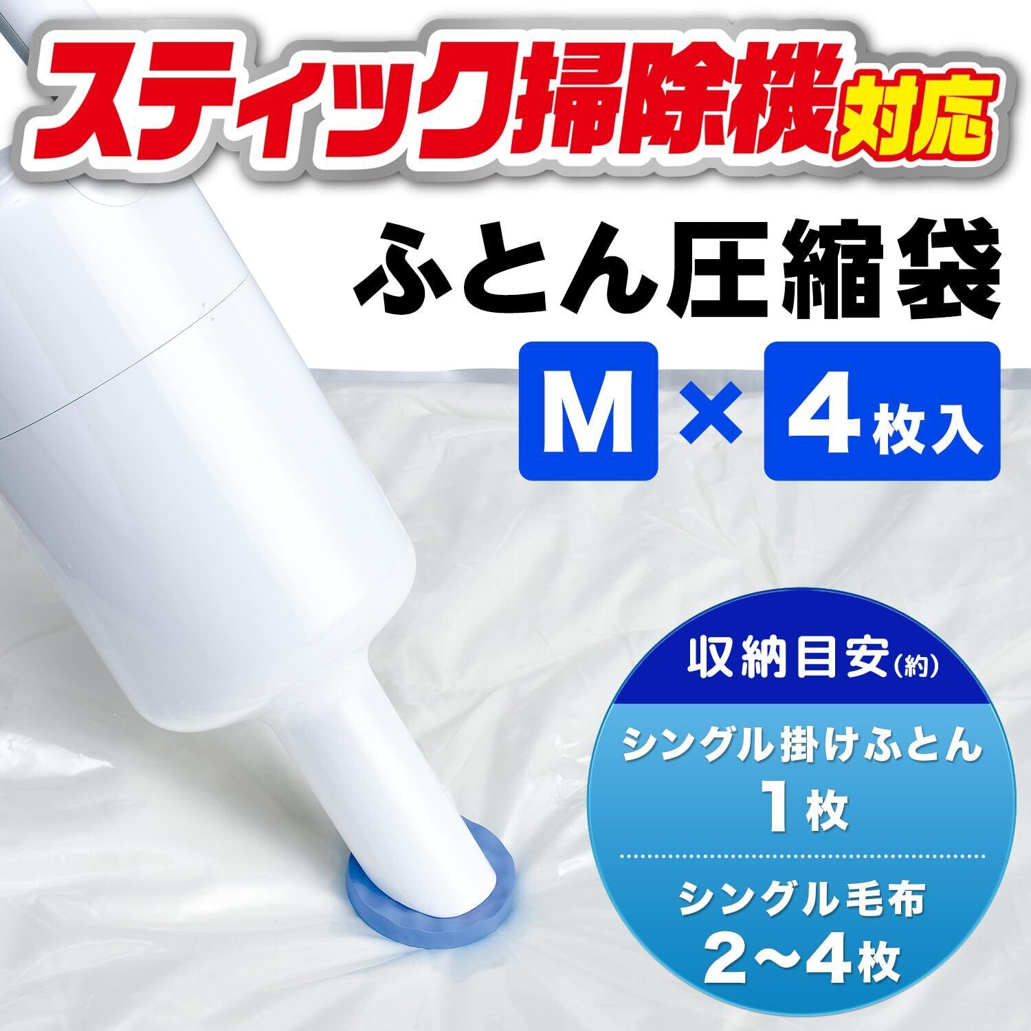レック スティック掃除機対応 ふとん圧縮袋 Mサイズ (4枚入) /目安:シングル掛けふとん1枚/ふつうの掃除機もOK/H00307