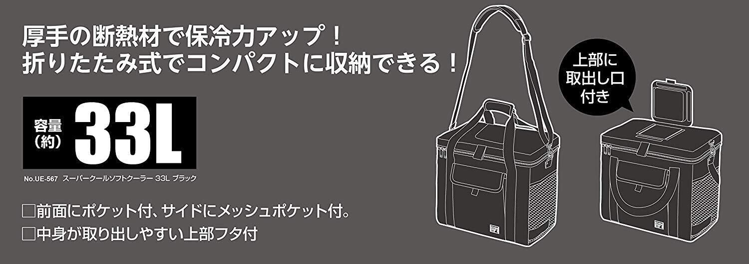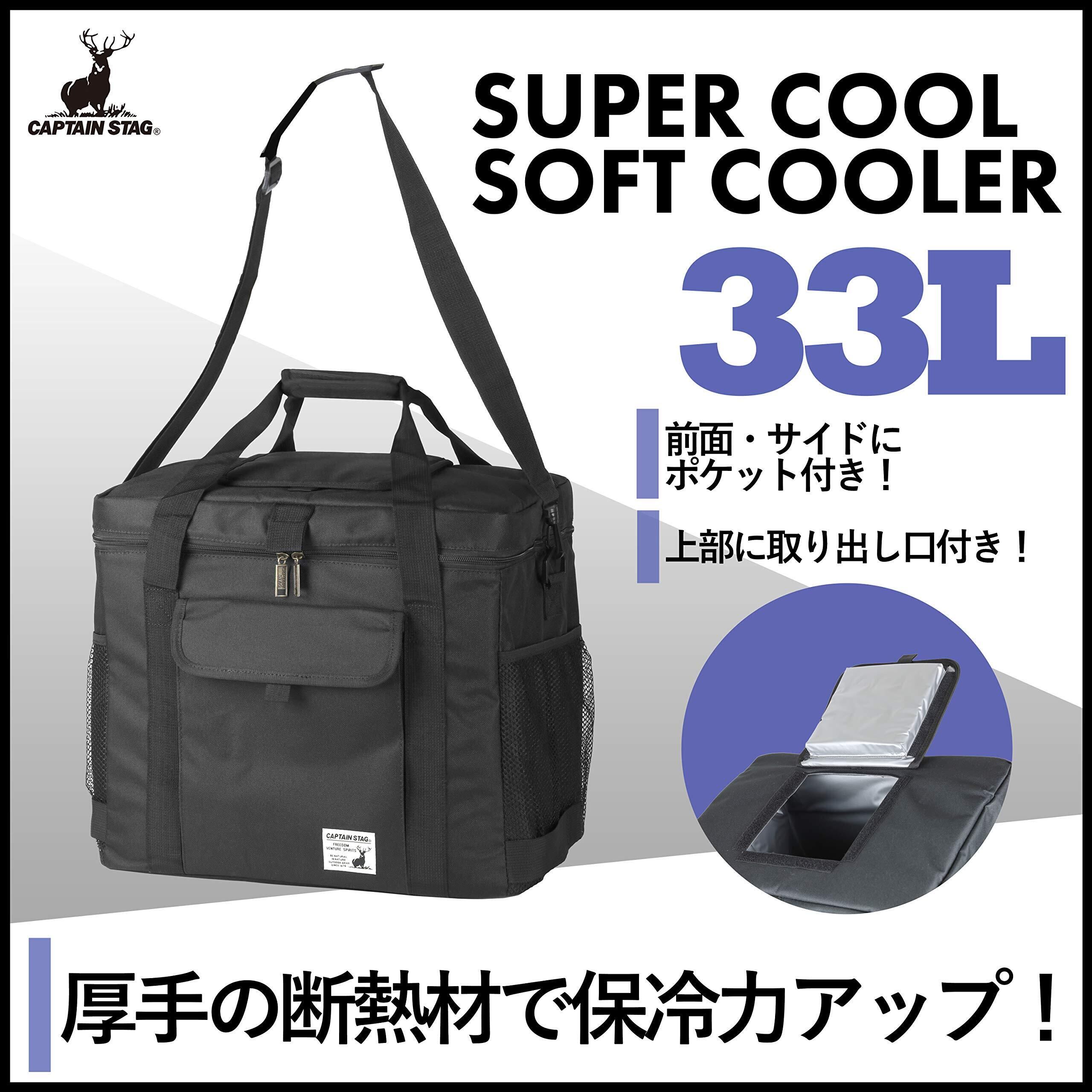 キャプテンスタッグ(CAPTAIN STAG) 保冷バッグ クーラーバッグ 折り畳み収納可 スーパークールソフトクーラー ブラック UE-567 / UE-568