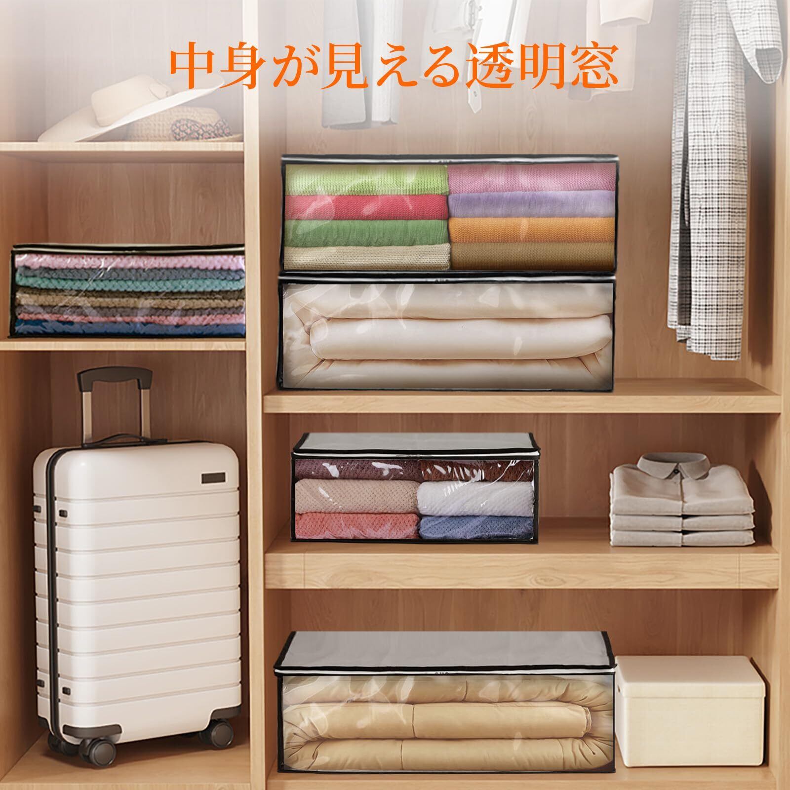 【製品仕様】: 各収納バッグの容量は35Lで、サイズは48 x 35 x 20 cmです。各バッグは、タオル30枚、パンツ10枚、ブランケット3枚が入ると推定されています。この収納バッグセットは、クローゼットやベッドの下などで使用することができ、寝室、寮、ロフト、地下室などに最適です。