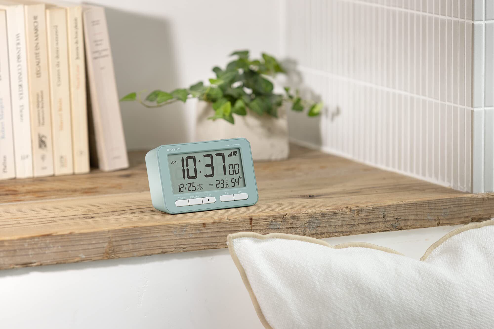 リズム(RHYTHM) 目覚まし時計 電波時計 電子音 アラーム (スヌーズ 付) 温度計 湿度計 カレンダー ブルー 7.8×12×5.4cm フィットウェーブ D234 8RZ234SR04