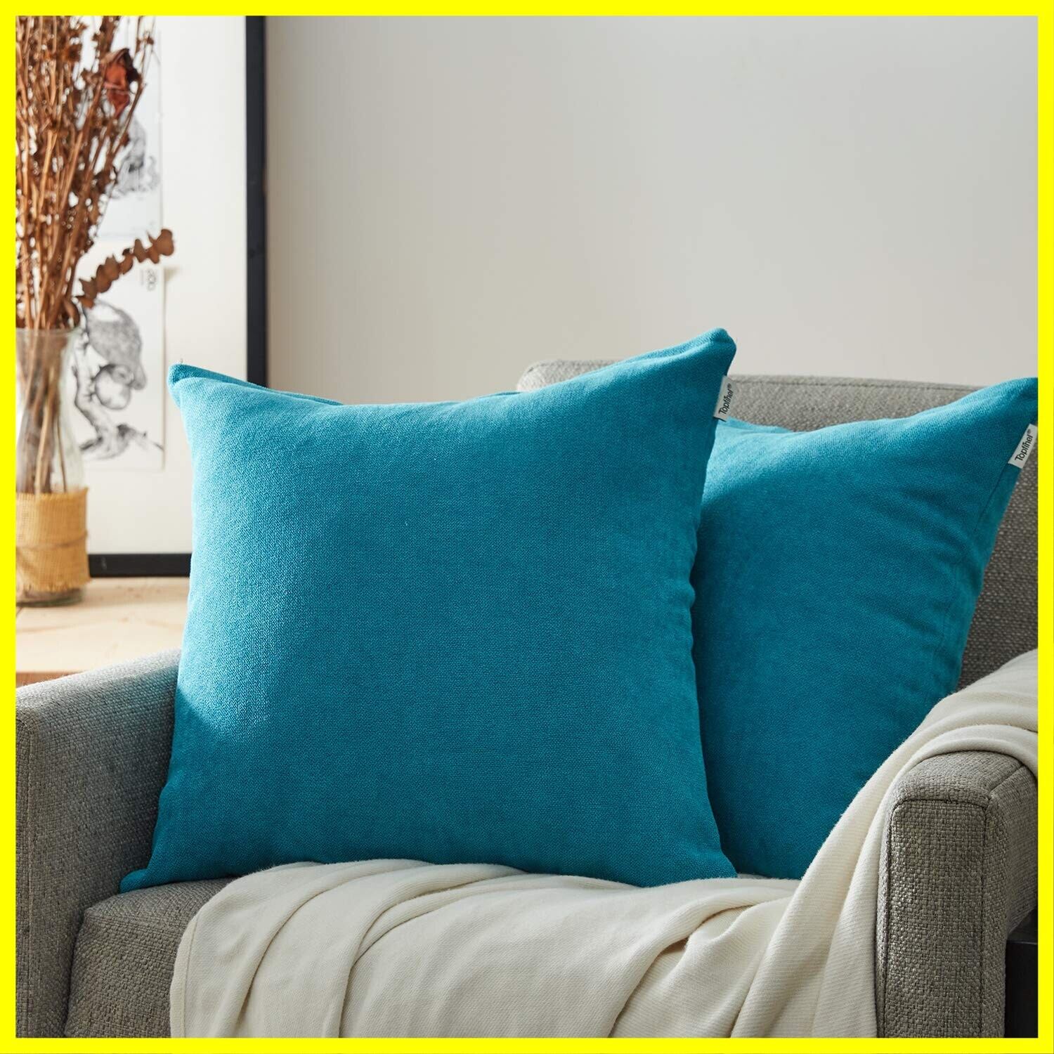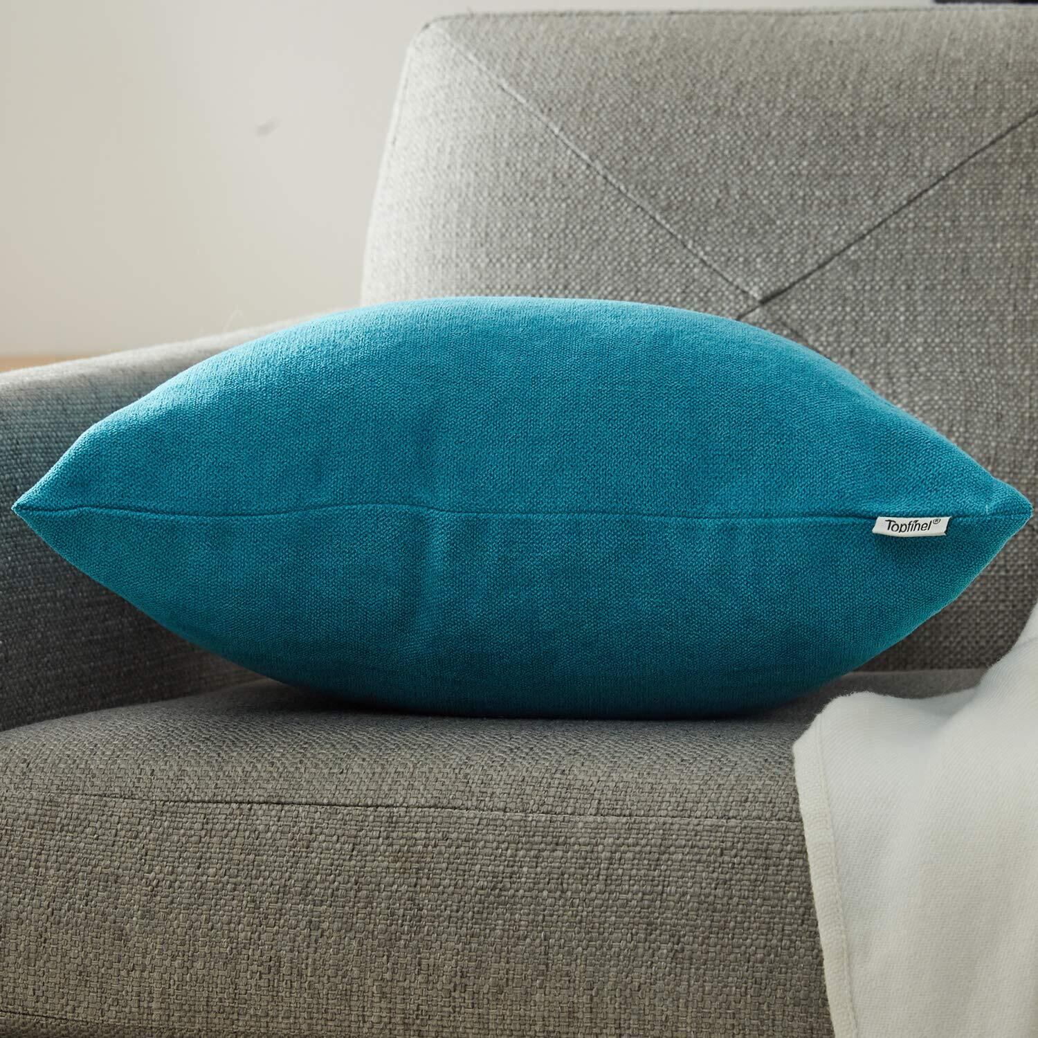 Topfinel クッションカバー リネンっぽい 60X60CM 北欧 おしゃれ 綿麻 無地 ソファ背当て 装飾枕カバー 座布団カバー ブルー 2枚(全19色)
