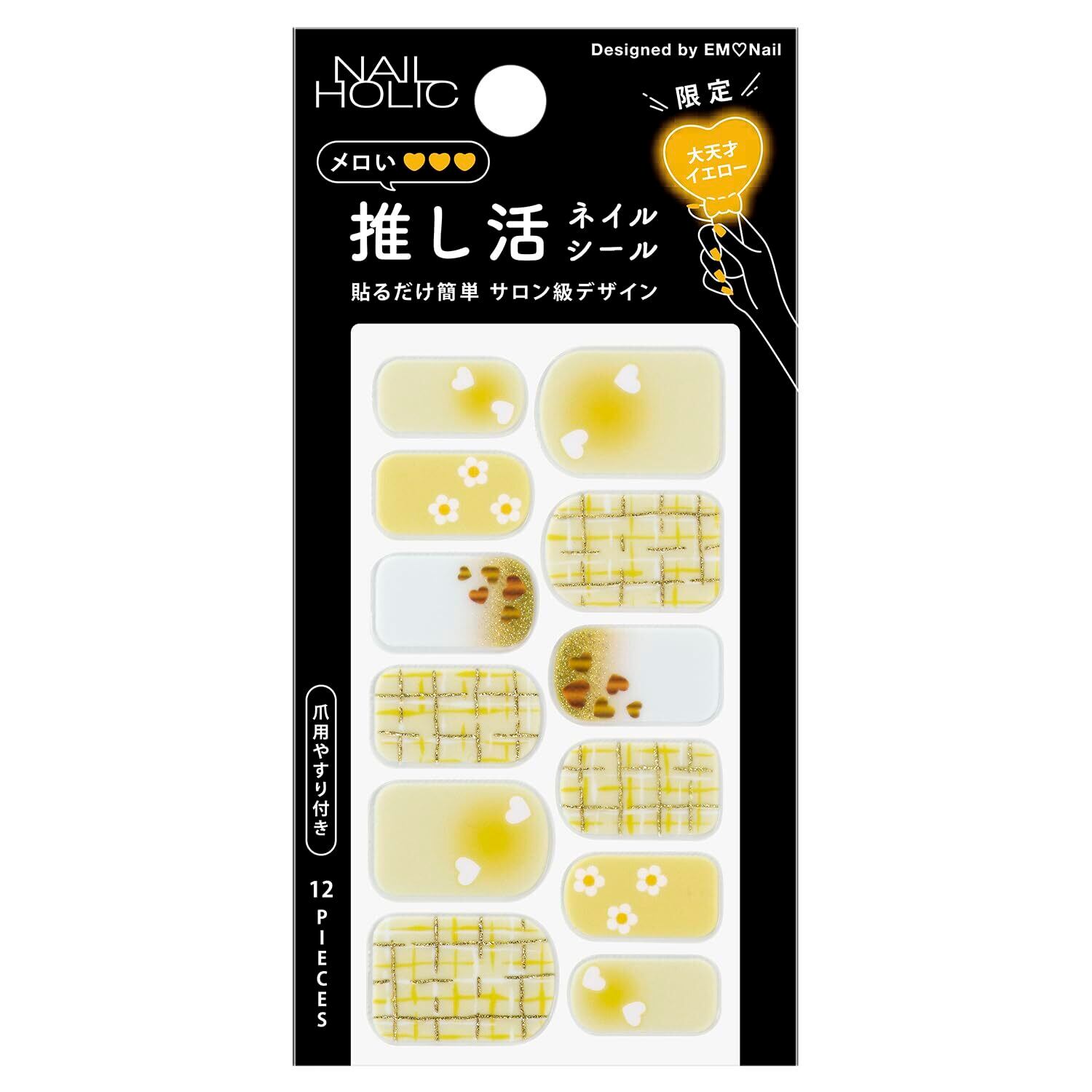 NAIL HOLIC(ネイルホリック) 推し活ネイルシール 06 大天才イエロー 12枚 貼るだけ 簡単 ハート 花 推し活 黄色 ネイルデザイン ネイルステッカー