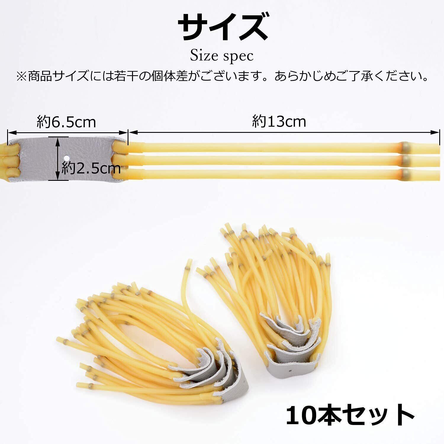 【セット内容】競技用パチンコ替えゴム×10個【サイズ】ゴム長さ:全長約13CM レザー部分長さ:全長約6.5CM