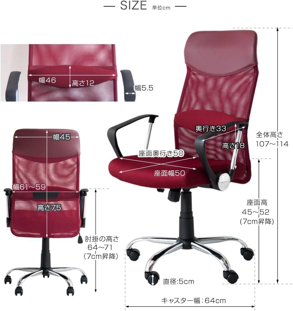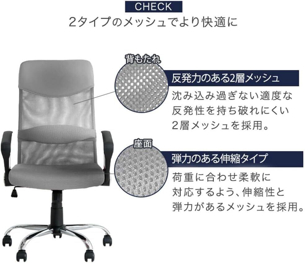 【床傷防止!PUキャスター】タンスのゲン オフィスチェア 腰楽ランバーサポート ハイバック メッシュ ロッキング 360度回転 座面昇降 デスクチェア 65090108(80325)