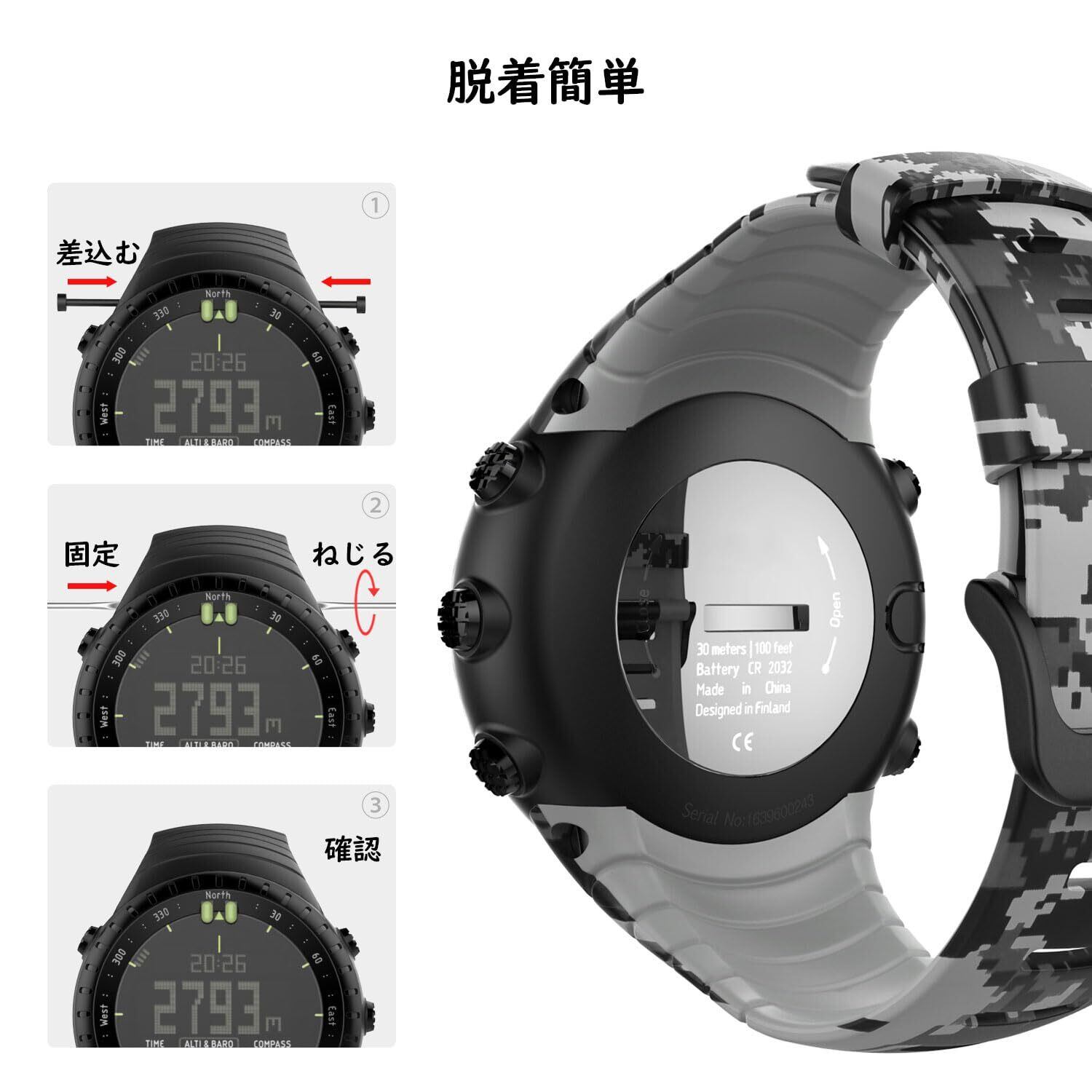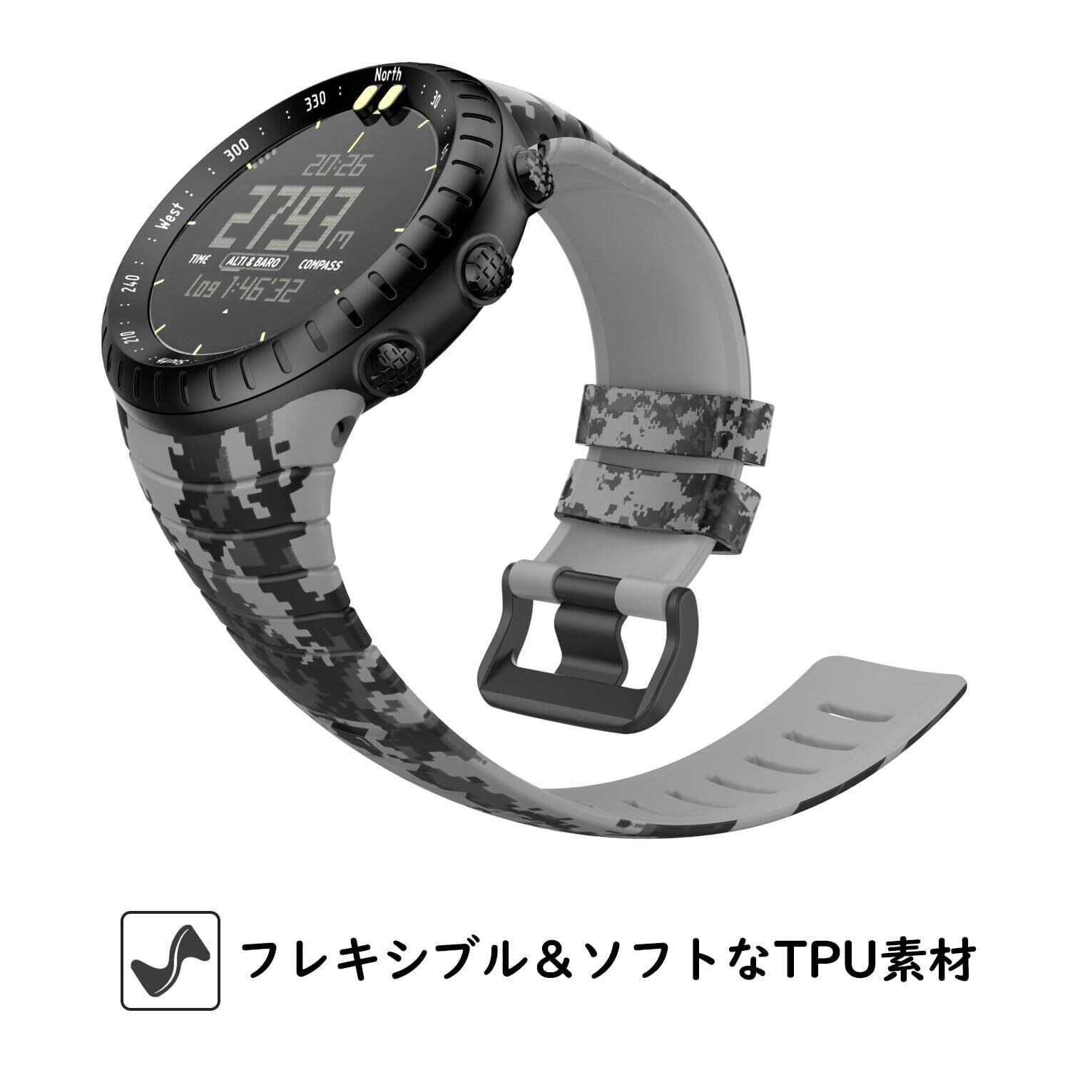 [ATiC] Suunto Core用 バンド SUUNTO(スント) Coreコア専用 ソフト TPU製ストラップ/バンド 交換ベルト 腕サイズ:5.51"-9.06" (140mm-230mm) デジタル迷彩