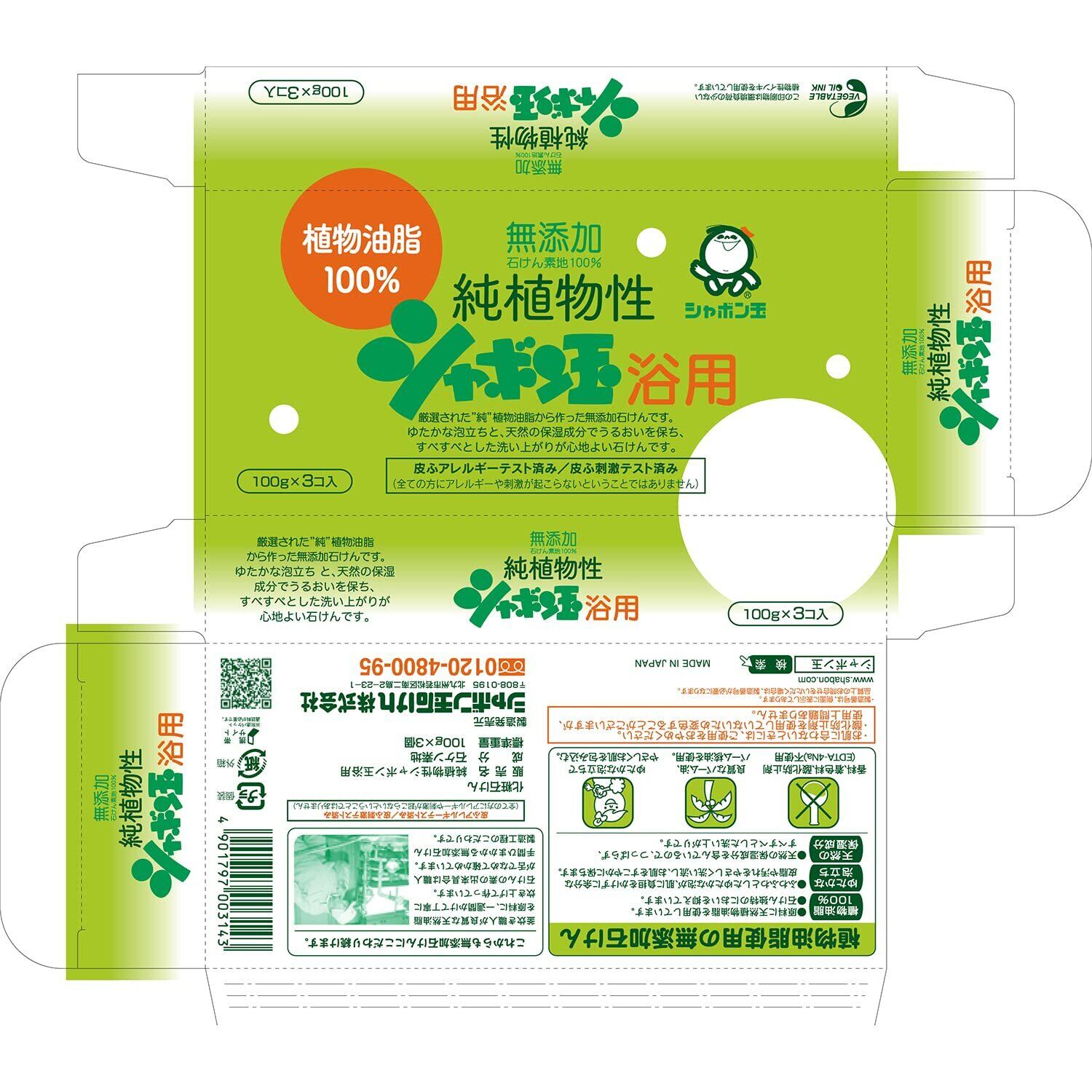 シャボン玉石けん 無添加せっけん 純植物性シャボン玉 浴用 100g×3個入り